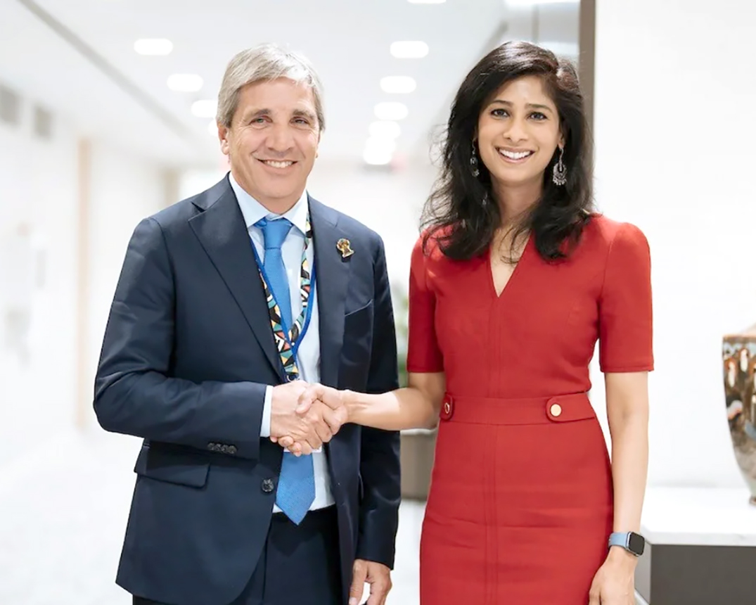 “Gracias Luis Caputo por una excelente reunión. Nos alentó el progreso reciente y los esfuerzos sostenidos bajo el nuevo programa”, escribió Gopinath en su cuenta de la red social X (ex Twitter), junto a una foto del encuentro.