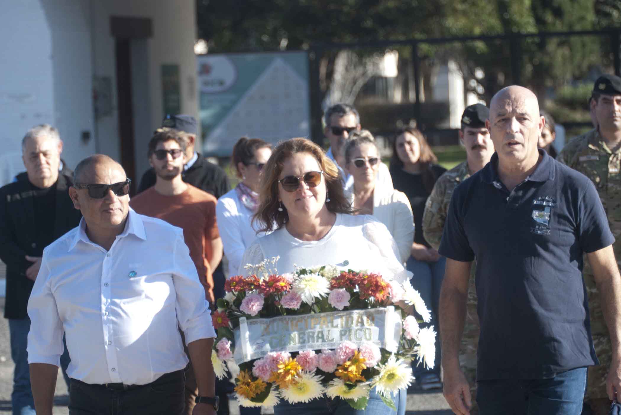 Posteriormente, la Cámara de Diputados de la provincia de La Pampa, la Municipalidad de General Pico y el Concejo Deliberante junto a la Asociación Veteranos de Guerra de Malvinas “Alberto Amesgaray” colocaron ofrendas florales al pie del monumento.