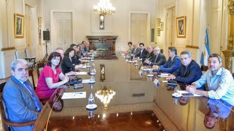 También el vicejefe de Gabinete, Juan Manuel Olmos; el secretario General de la Presidencia, Julio Vitobello; la presidenta del Banco Nación, Silvina Batakis; y las secretarias Vilma Ibarra (Legal y Ténica) y Mercedes Marcó del Pont (Asuntos Estratégicos).