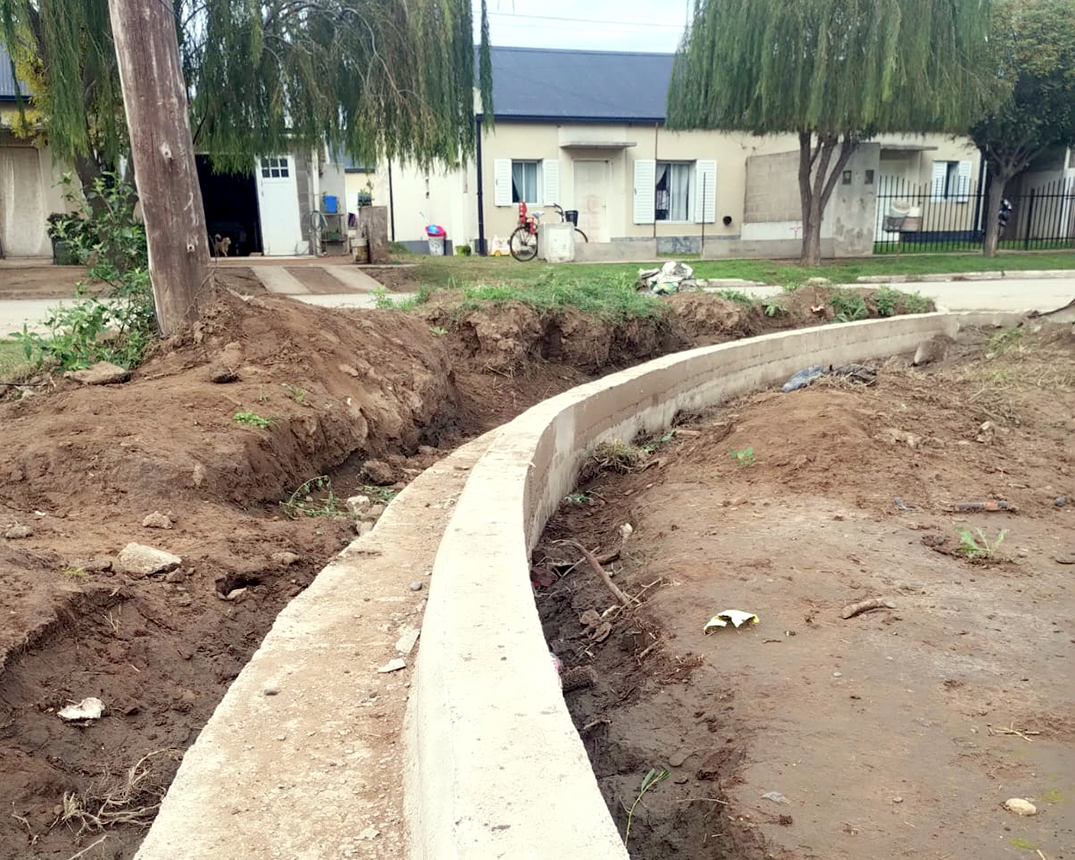 Continúan los trabajos de construcción de 625 metros de cordón cuneta en nuevos barrios de Caleufú.