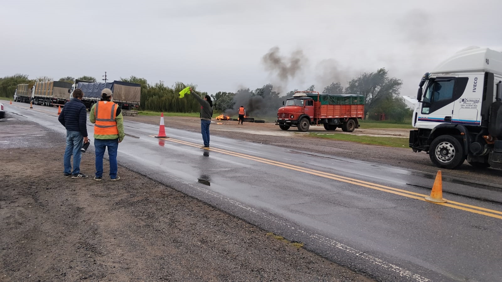 Incluso se invitó a otros trabajadores del sector, que circulaban con cereal y otro tipo de cargas, a sumarse durante algunos minutos a la protesta que incluyó la quema de neumáticos en una banquina.