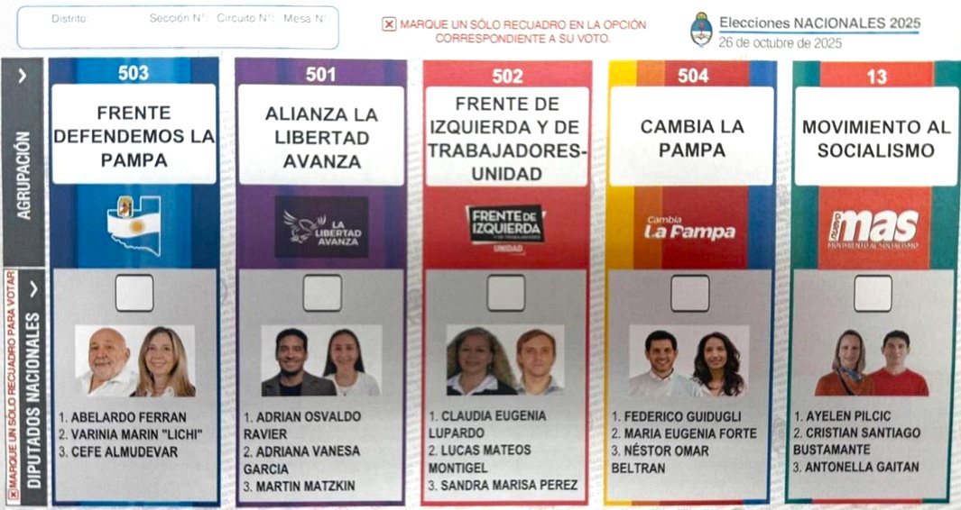 El Juzgado Federal de La Pampa oficializó el viernes las cinco nóminas que el 26 de octubre participarán de las elecciones legislativas nacionales y también sorteó la ubicación de las fórmulas en la Boleta Única de Papel.