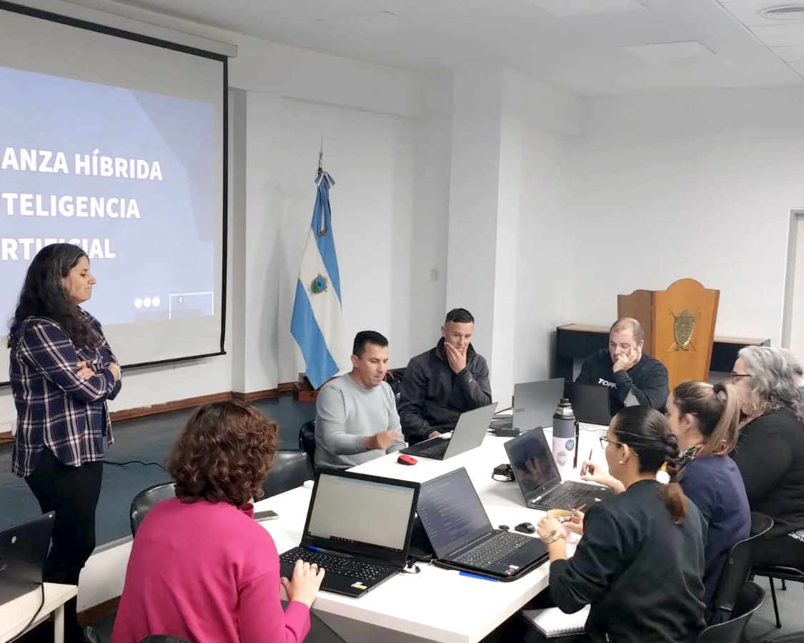 La propuesta combina instancias presenciales con trabajo en el aula virtual, explorando aplicaciones de IA para la planificación, producción y evaluación educativa, siempre con fundamentos pedagógicos y en el contexto específico de la formación policial.