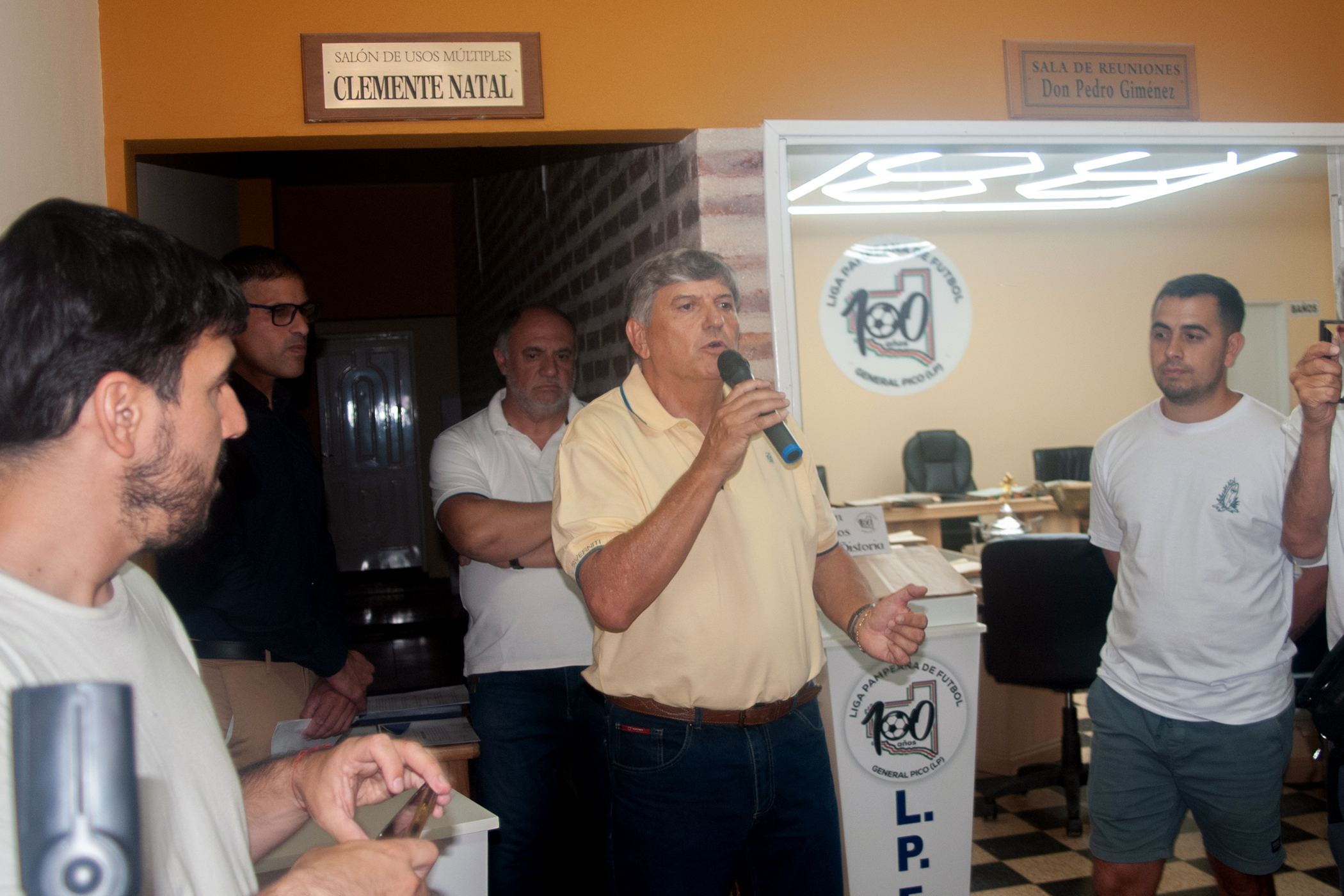 Acto seguido, tomó la palabra Nicolás Mendoza que se limitó a destacar el valor que tiene como entidad intermedia la Liga Pampeana para luego dar paso a reconocimientos. Primero fue el descubrimiento de placas que quedarán instaladas en una de las paredes del pasillo de acceso del edificio de calle 1.
