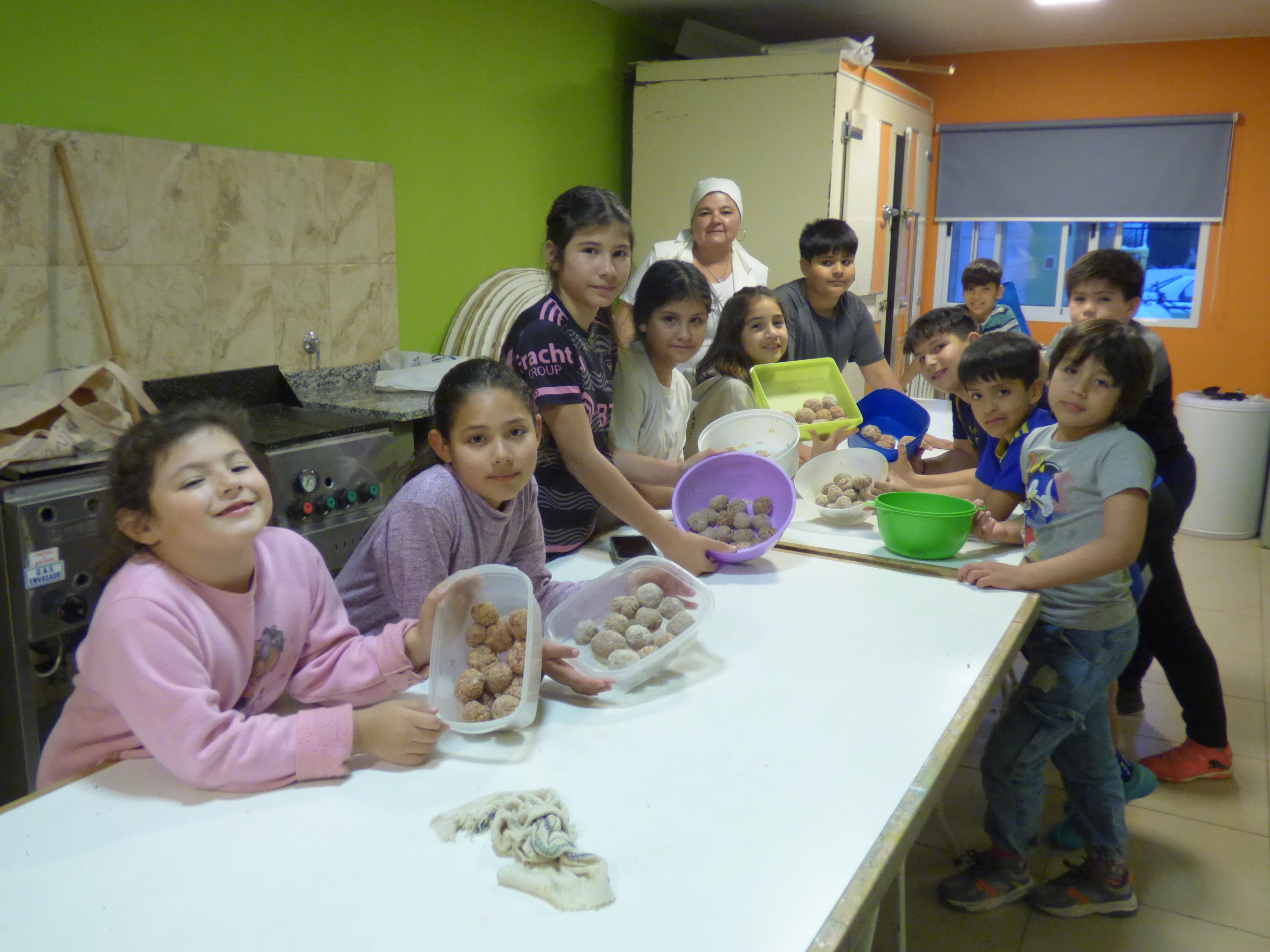 Informó que "la mayoría de los productos utilizados se consiguen en Chacharramendi y tratamos de equilibrar los gustos por las comidas para que sean lo que comunmente comen en sus casas y aprovechando todas las cosas que tenemos en el pueblo". Más adelante, apuntó: "En cuanto a lo que vamos a cocinar en la clase voy viendo en la semana que ingredientes conseguimos y además les pregunto a ellos para incentivarlos a que vengan a cada clase, siempre vienen con ideas y las clases las organizan ellos. Hoy por ejemplo hicieron albóndigas para llevar a sus casas y que luego las cocinen con puré o arroz o como a ellos mejor les guste".