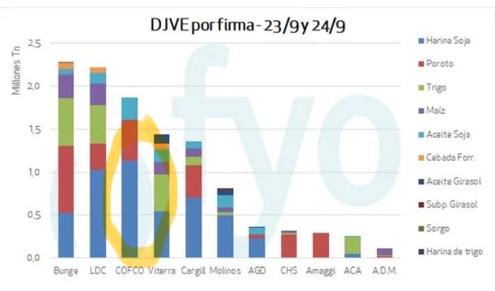 Con el mayor volumen declarado de exportaciones de harina de soja -commodity estrella del complejo sojero argentino-, la china Cofco colocó a retenciones cero más de 2,5 millones de toneladas, por un monto superior a los USD 1.200 millones.
