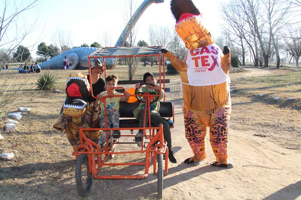 El domingo se realizó el lanzamiento de las nuevas atracciones en el Parque de los Dinosaurios, como el “Explorador”, un arenero temático donde los más chicos pueden ser paleontólogos por un día para encontrar “huesos de dinos”. También se sumaron las “Dino crónicas”, un video en el que se ve dentro de la panza del dinosaurio y se recorre la historia del Parque mientras se responden distintas trivias.