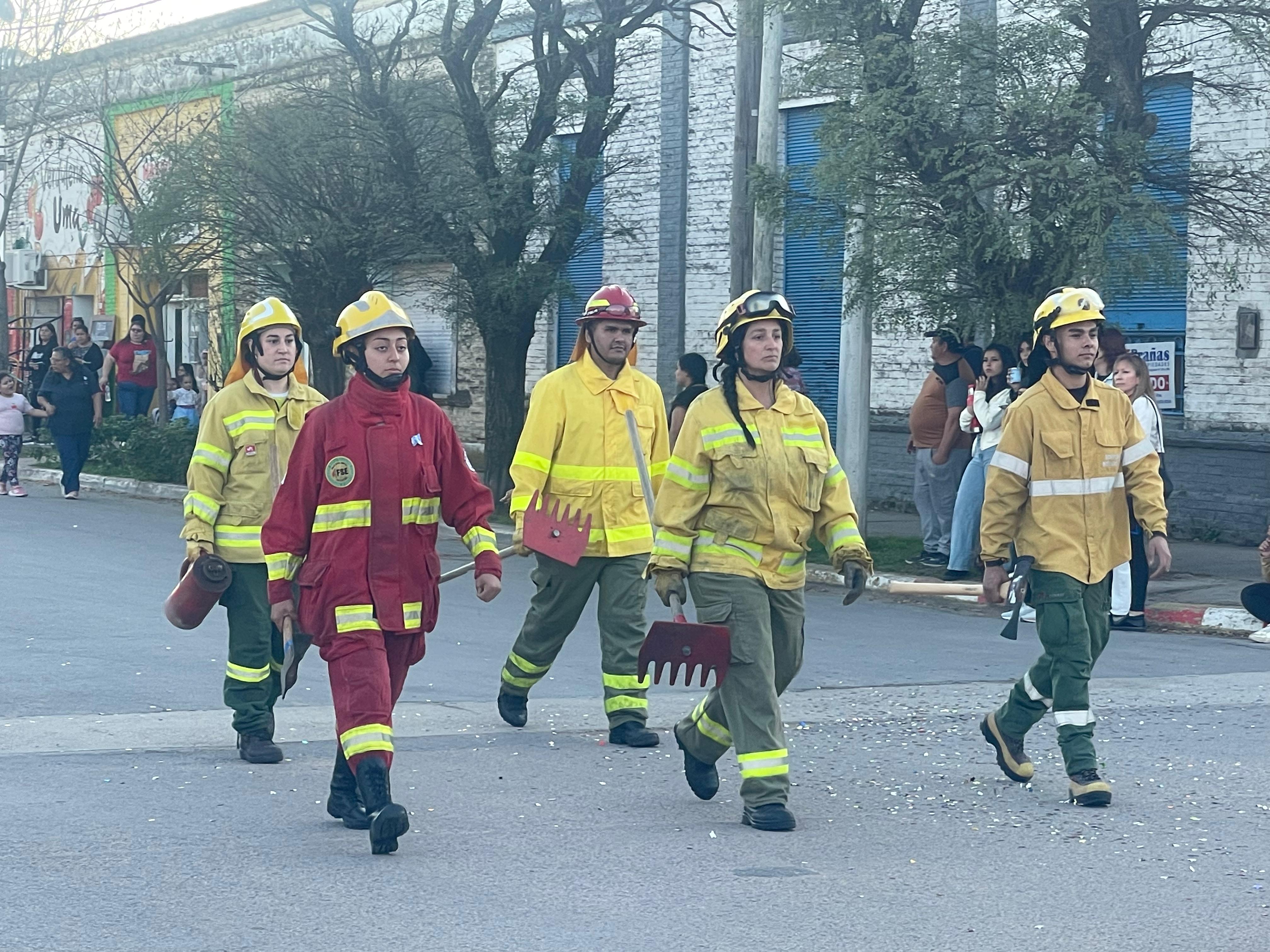 La celebración incluyó el desfile de instituciones y cuarteles de bomberos voluntarios, el descubrimiento de placas conmemorativas en la sede local y un cierre con chocolate para todos.