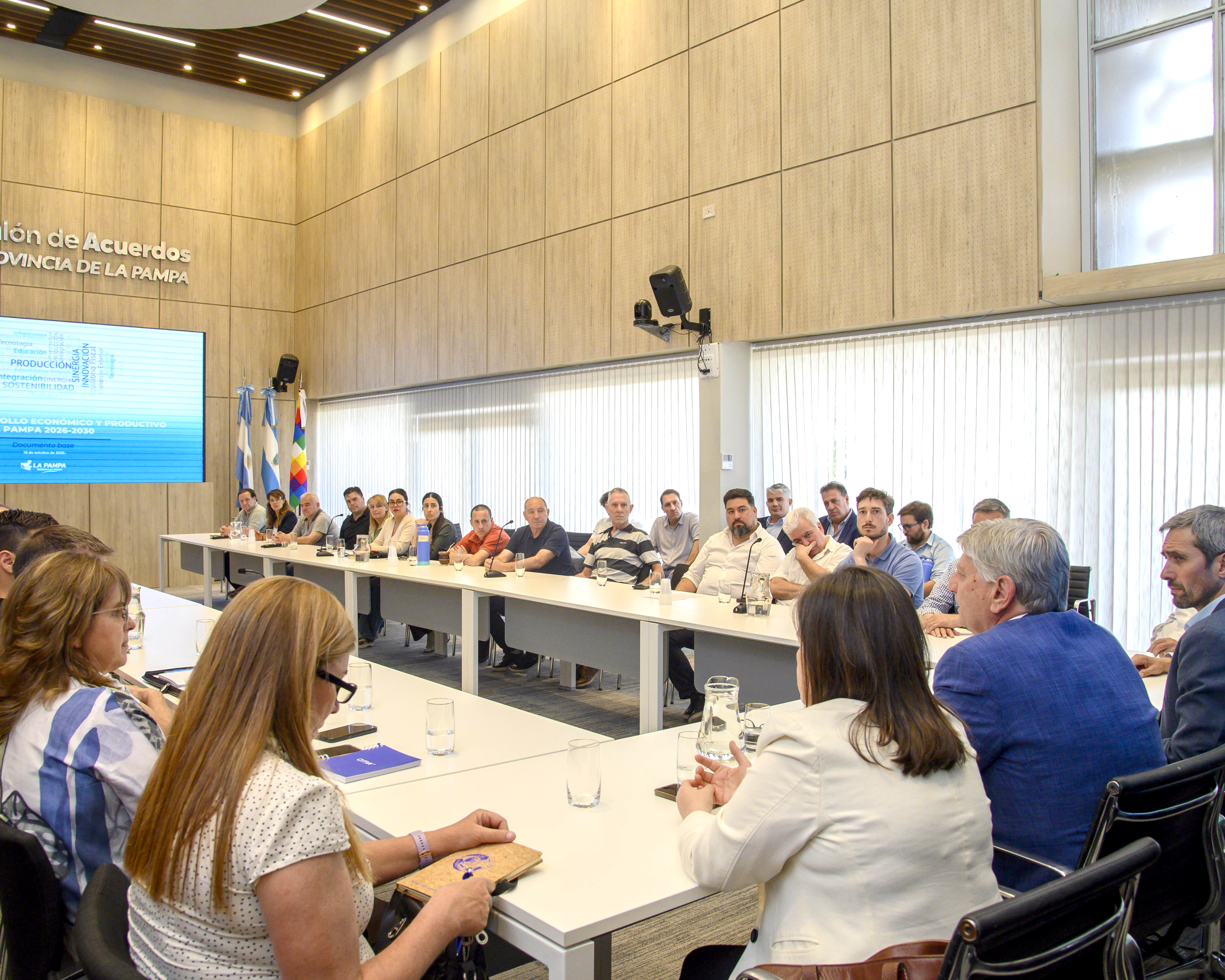 El encuentro reunió a representantes de cámaras empresariales, cooperativas, consejos profesionales y la Universidad Nacional de La Pampa, en el marco del diálogo público–privado que sostiene el gobierno provincial.