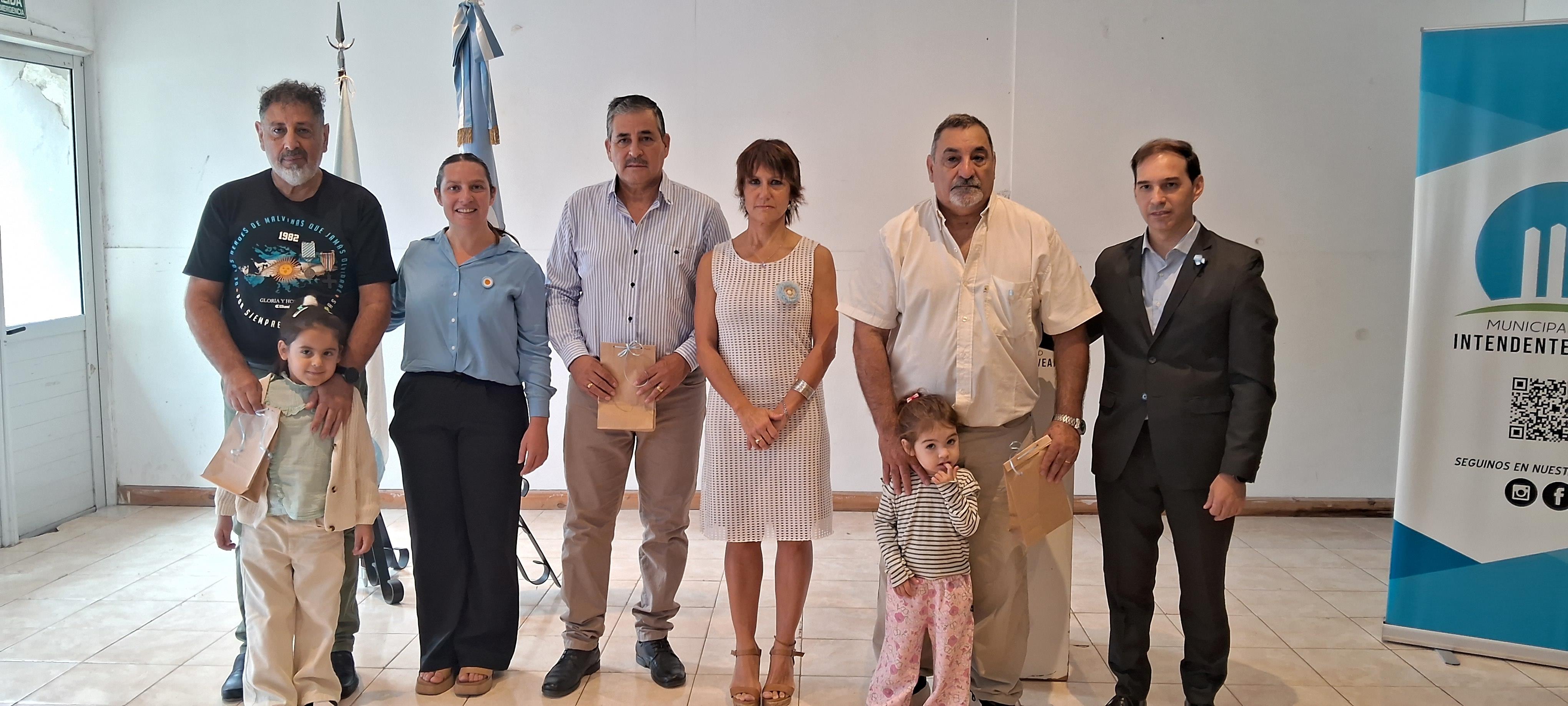 Asimismo, se llevó a cabo un reconocimiento a los veteranos presentes, Oscar Marano, Miguel Farías y Abel Novillo, a quienes se les hizo entrega de presentes en agradecimiento por su valentía, compromiso y entrega, resaltando su rol como memoria viva de la gesta de Malvinas.