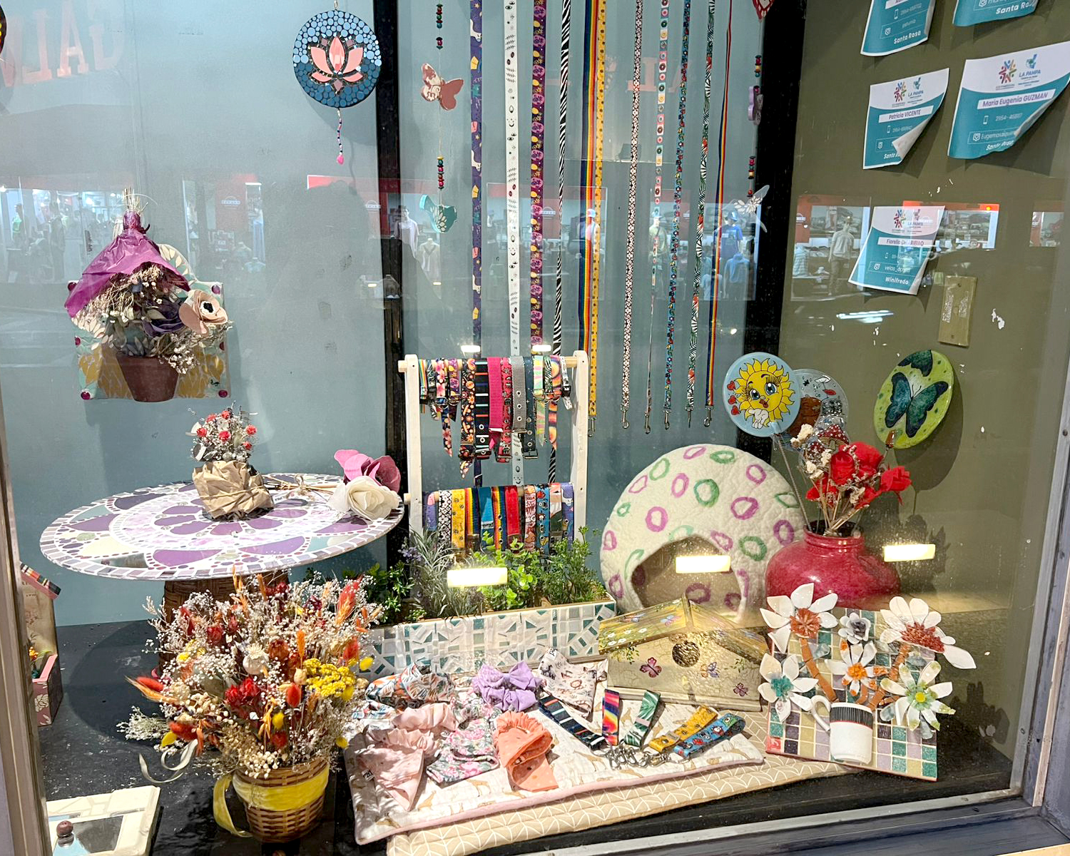 Quedó habilitada una nueva muestra de productos de la Red pampeana de mujeres y diversidades emprendedoras en las vidrieras del ISS.