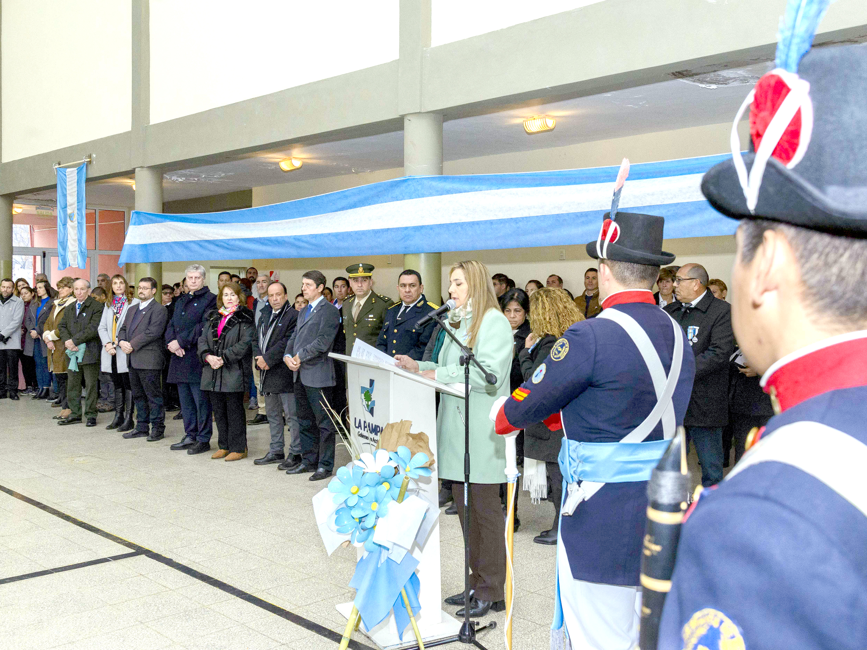 La intendenta de Luan Toro, Mónica Valor, dio la bienvenida a los presentes y afirmó que “hoy, Luan Toro se viste de celeste y blanco” e hizo una recorrida histórica sobre la creación de la Bandera Argentina por parte de Manuel Belgrano, en el día de su fallecimiento. “Nuestra bandera nos hermana en nuestro lugar y nos representa en el mundo. Es el símbolo de la lucha por alcanzar la libertad del pueblo argentino. En ella están inscriptas las luchas por la independencia, la libertad, la defensa de nuestra soberanía y los nombres de los héroes anónimos que murieron por la Patria”, dijo la jefa comunal.