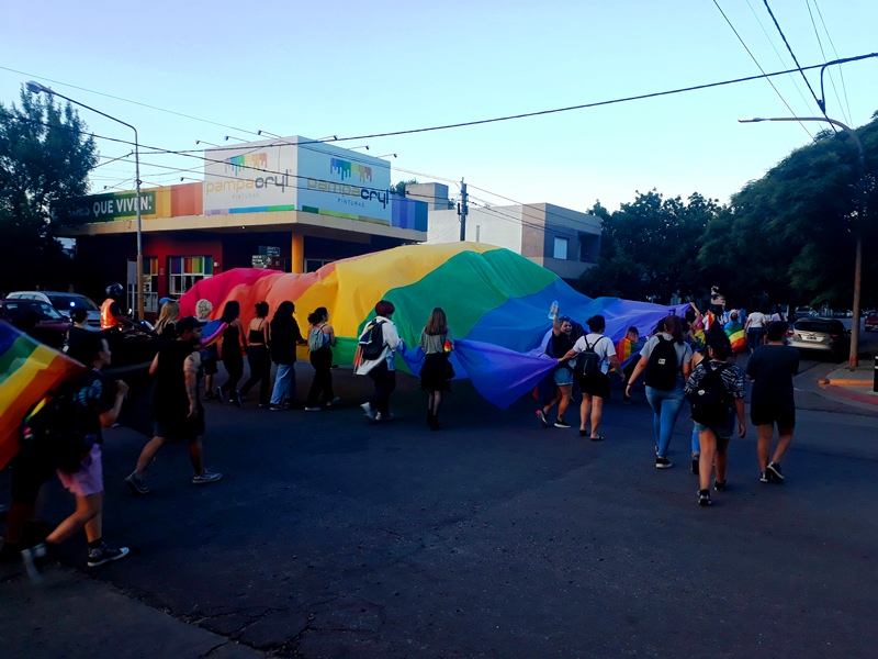 Seguidamente, todos los allí presentes se dispusieron en forma de columna para iniciar la Marcha del Orgullo, que comenzó su recorrido por las calles 9 y 18, continuando por la zona céntrica de la ciudad para volver después a la plaza San Martín, en donde se leyó un documento para coronar la jornada.