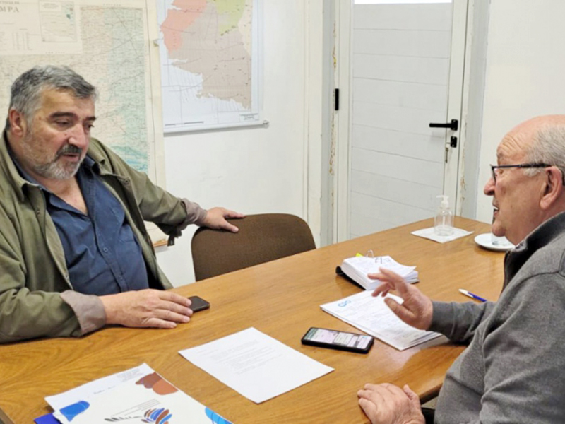 El secretario de Recursos Hídricos, Néstor Lastiri, recibió al intendente de Santa Isabel, Guillermo Farana, para conversar sobre los avances de la instalación del radar meteorológico que se está colocando en la localidad oesteña.