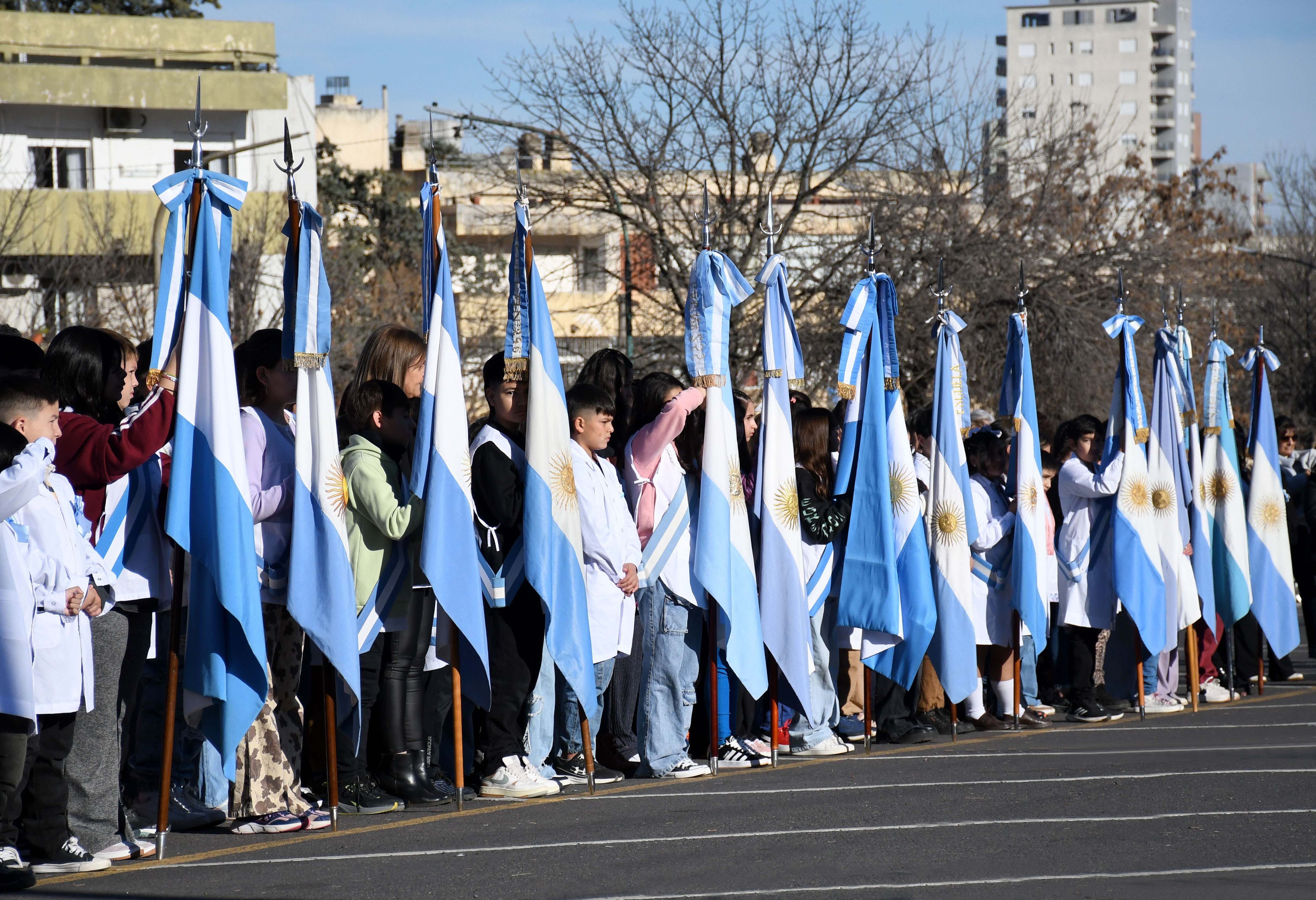 “Cada vez que una niña o un niño promete la bandera, reafirmamos nuestro compromiso con esa visión de país. Prometer la bandera es prometer respeto, solidaridad, honestidad. Es comprometerse con la convivencia, con el trabajo colectivo, con el cuidado del otro”, dijo la titular de Educación antes que la directora general de Educación Primaria, María Magdalena Godoy les tomara la promesa a los alumnos y alumnas.