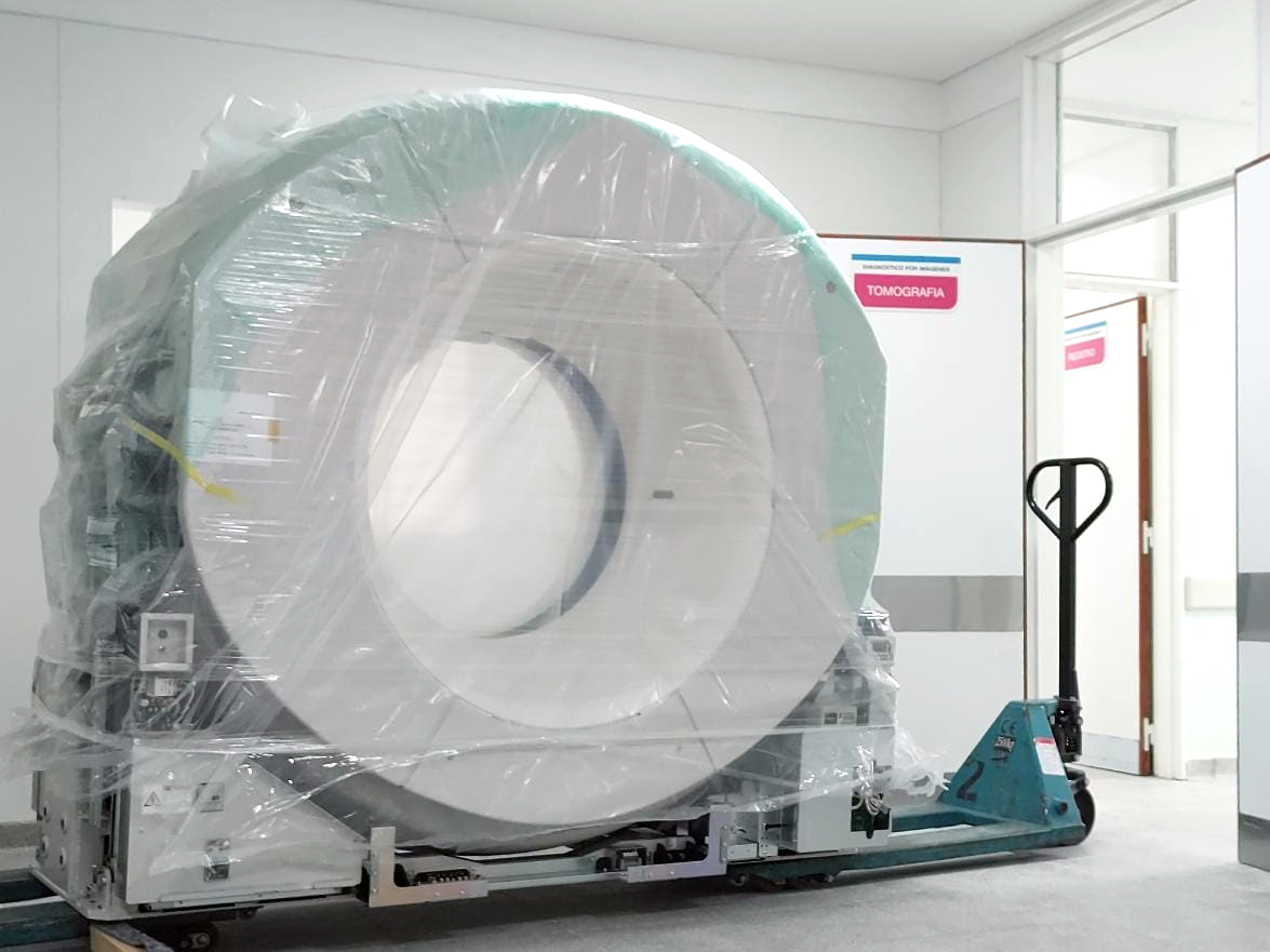 Hoy se recepcionó un tomógrafo marca Canon, en el que se invirtieron U$S 447.200. Se trata de un tomógrafo multicorte de alta prestación (160 cortes), que además de obtener los estudios habituales de alta resolución, brinda imágenes instantáneas del corazón en reposo y de sus estructuras vasculares.