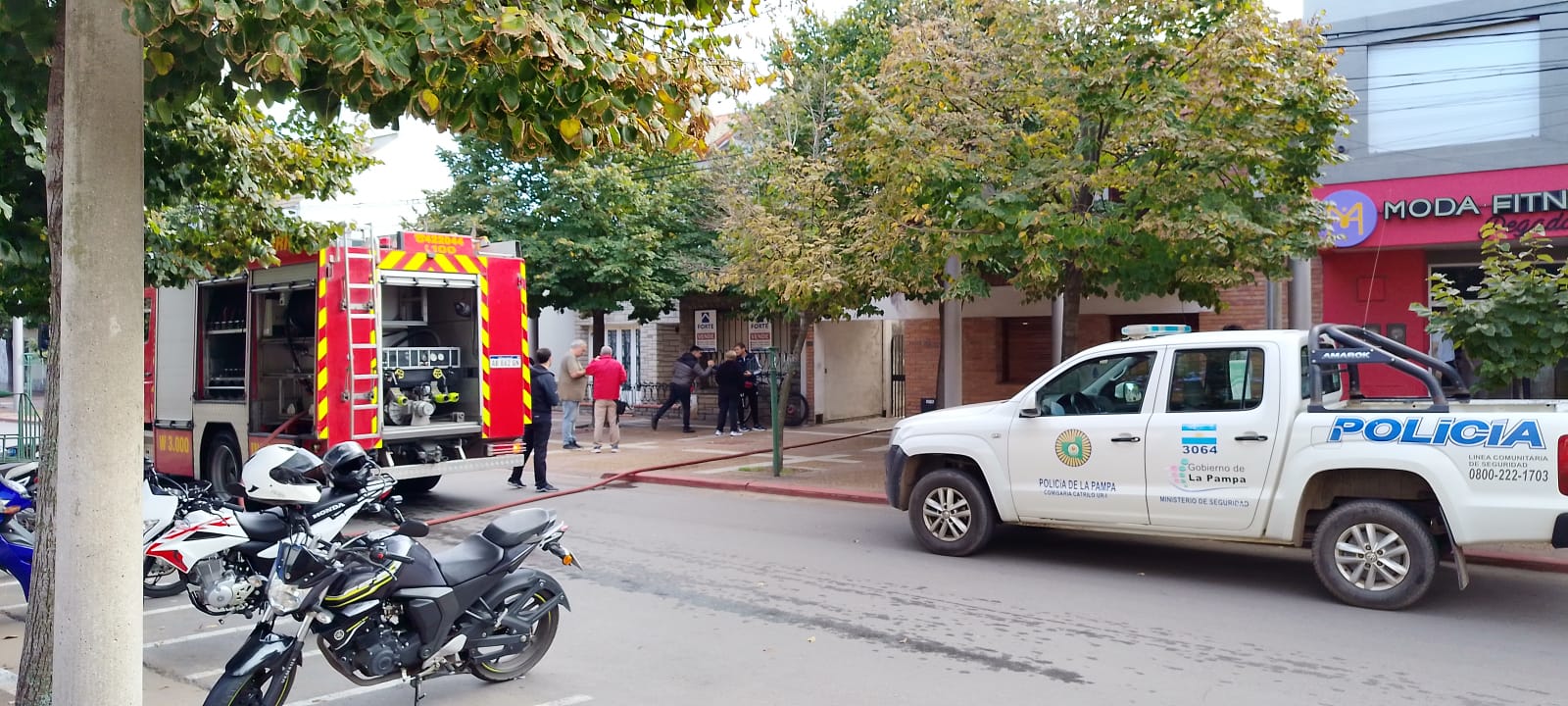 Minutos después del inicio del siniestro, arribaron efectivos de la Comisaría Primera y personal del Comando Radioeléctrico, quienes procedieron a asegurar el área y resguardar a los presentes. Posteriormente, una dotación de seis integrantes de los Bomberos Voluntarios de General Pico completó las tareas de extinción, enfriamiento y ventilación del inmueble afectado.
