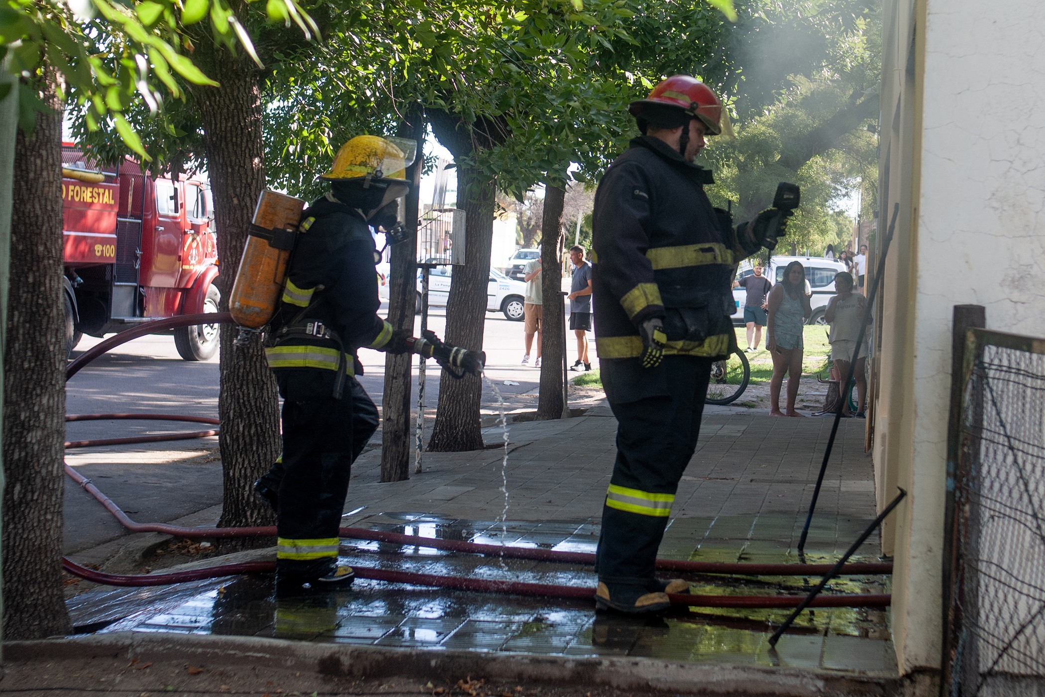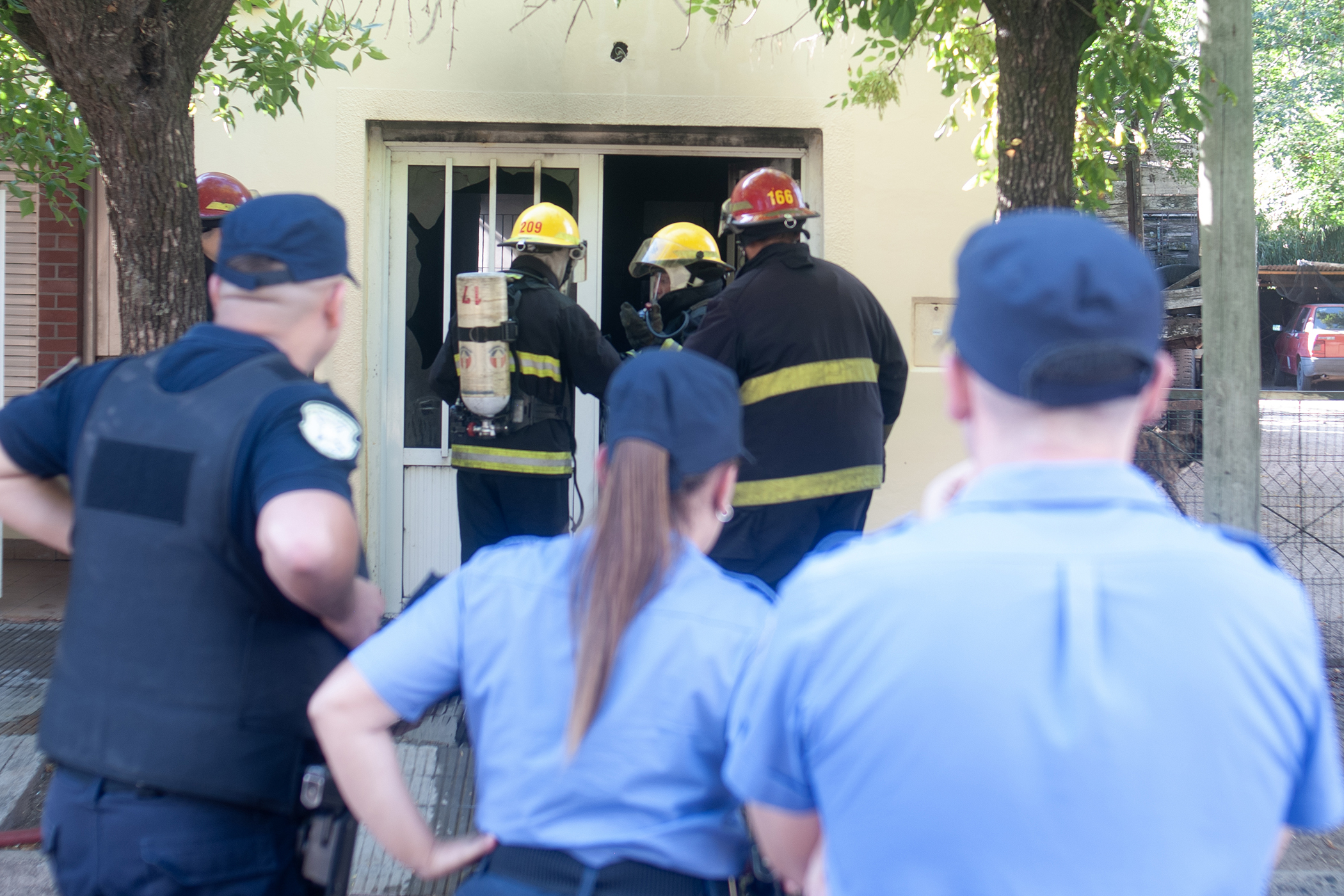 En el lugar trabajaron dos unidades de Bomberos Voluntarios, con aproximadamente 7 efectivos, junto a personal de Comisaría Segunda. El fuego logró ser controlado tras intensas tareas.