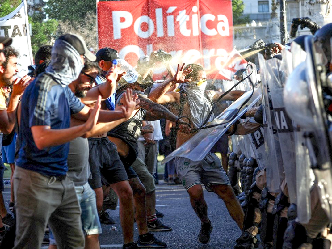 Luego, la policía arrojó gas pimienta sobre los manifestantes, lo que incrementó la tensión en el lugar. Dentro del grupo de personas que protestaban se encontraba la legisladora del Frente de Izquierda, Celeste Fierro.