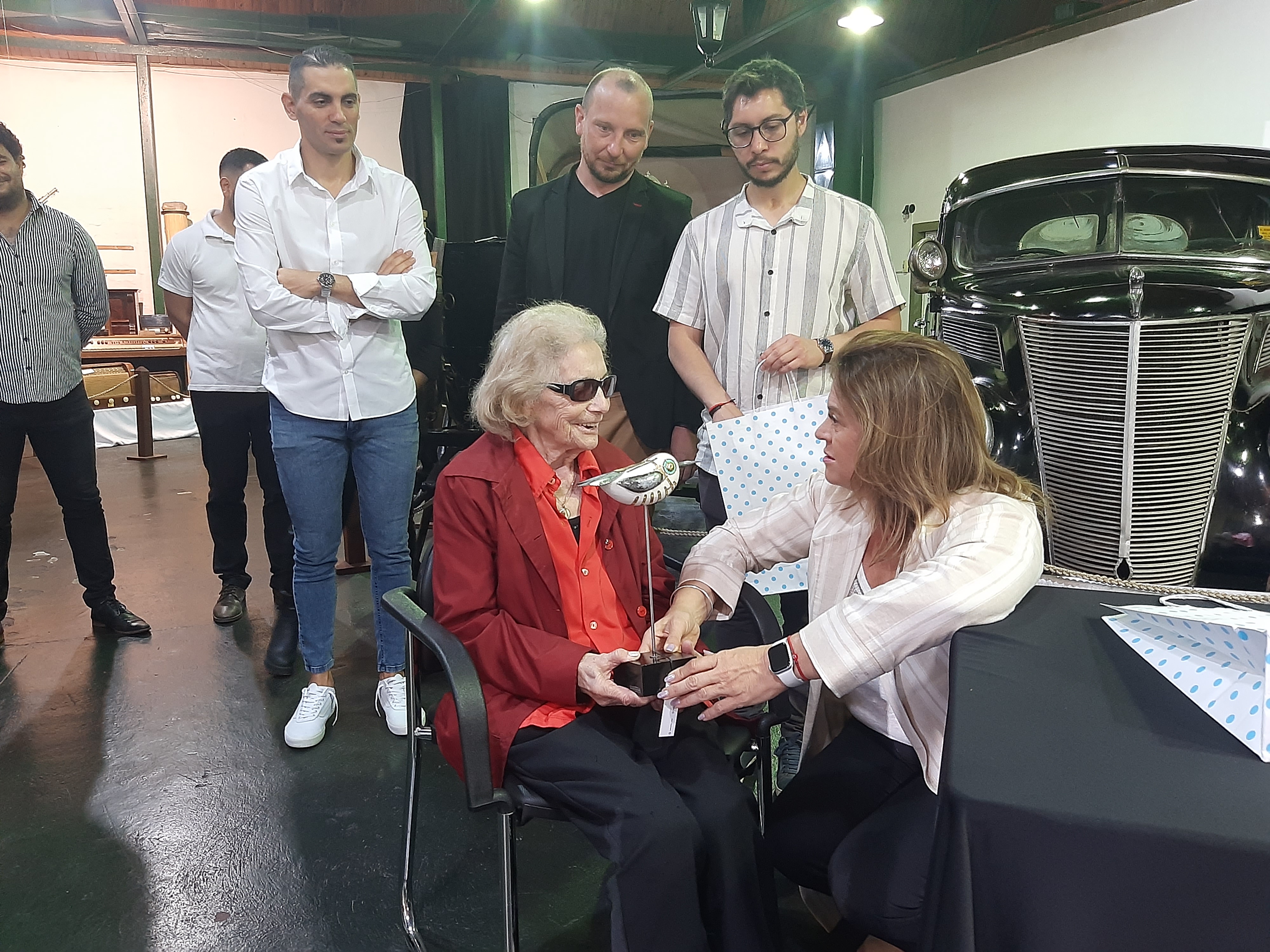 A continuación, la intendenta Alonso realizó la entrega de un presente recordatorio a los integrantes de la reconocida familia.