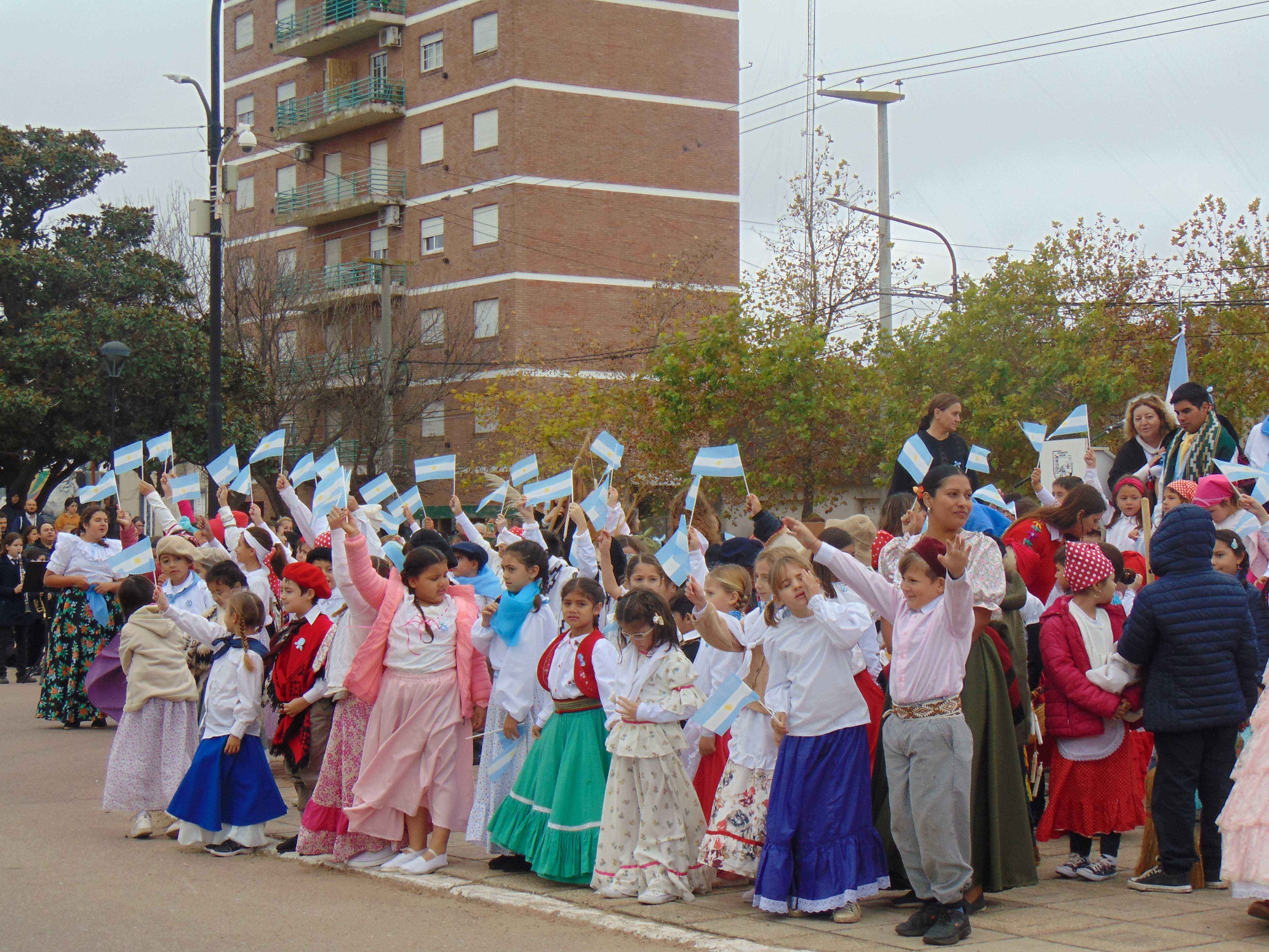 “El Pericón nos transportó por un momento a aquellos tiempos en que el pueblo soñaba con libertad”, expresó la conductora del evento, y destacó la participación de docentes, exalumnos y familias en esta puesta en escena, en el marco de los 125 años de la Escuela Nº 17.
