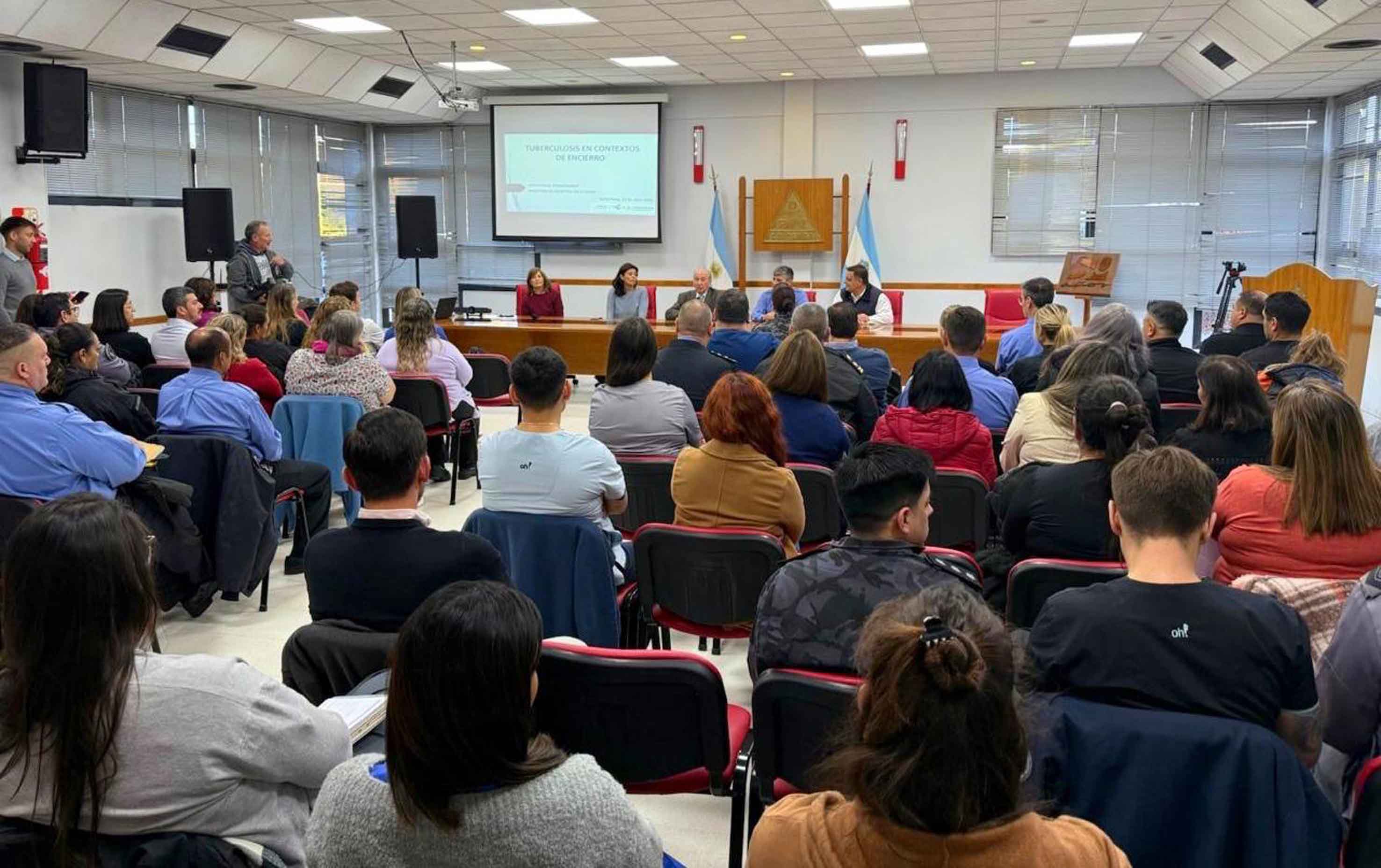 La apertura del encuentro estuvo a cargo del ministro de Salud, Mario Rubén Kohan; el jefe de Policía, Claudio Cano; el subsecretario de Formación, Marcos Carnicelli; la directora de Epidemiología, Ana Bertone; y la médica referente del Programa Provincial de Tuberculosis, Patricia Estrella. Además, participaron autoridades de la Policía de La Pampa, Unidades Penitenciarias (U4, U30 y U13), el Regimiento Santa Rosa-Toay, la Dirección de Coordinación de la Unidad de Abordaje de Políticas Socializadoras y profesionales de establecimientos de salud de toda la Provincia.