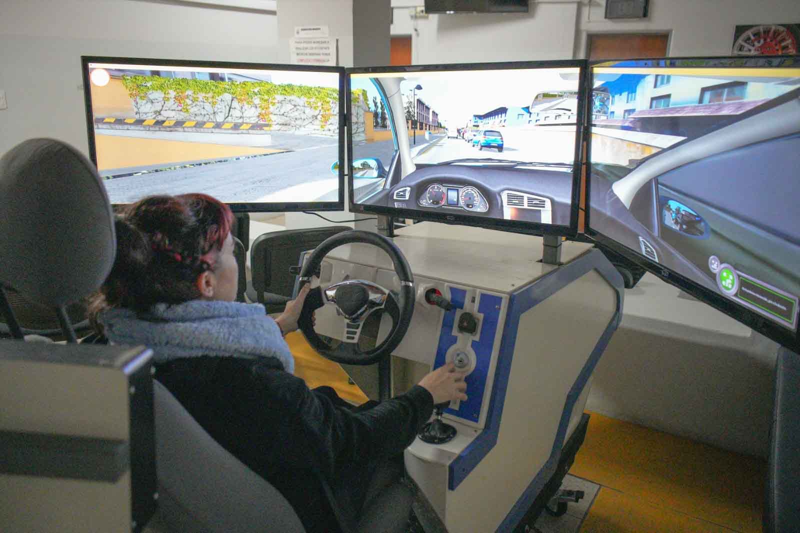 Este elemento cuenta con un programa que, a través de pantallas LED, permite al o la practicante llevar a cabo una conducción simulada. De esta manera, podrán transitar en entornos y situaciones de una forma realista, ya que los escenarios incluyen tráfico y peatones.