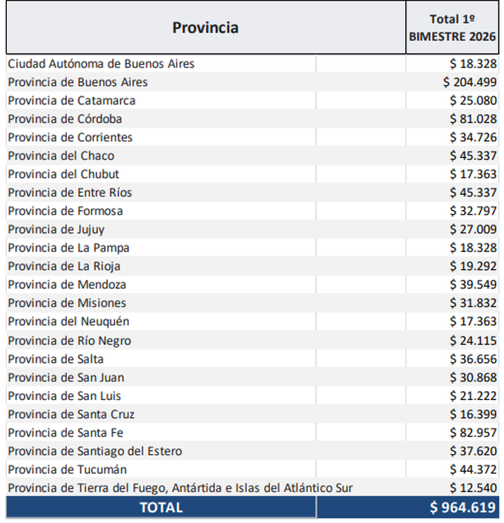 La provincia más perjudicada fue Buenos Aires, con una pérdida de $204.499 millones, seguida por Santa Fe, con $82.967 millones, y Córdoba, con $81.028 millones; mientras que La Pampa sufrió un recorte de $18,328 millones.