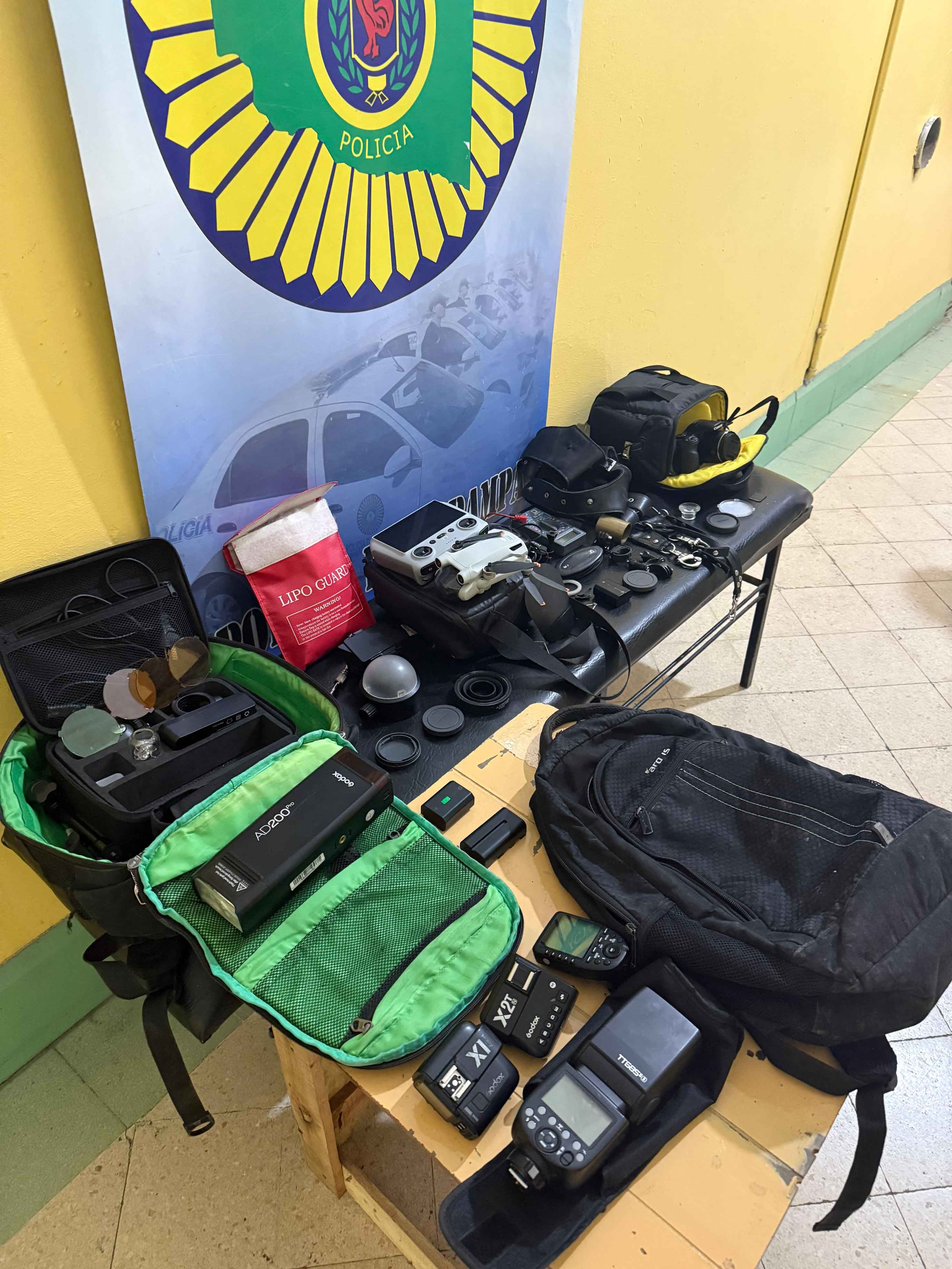 Agregó que “entre los elementos sustraídos se encontraban cámara fotográfica profesional, dron, lentes, baterías, entre otras cosas”.