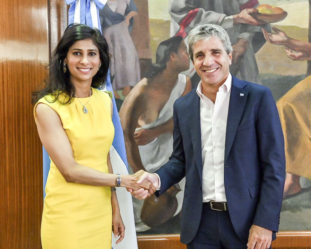 Gita trabajó de cerca con el gobierno argentino y el equipo técnico que monitorea el programa firmado con el país. En distintas oportunidades se reunió con el presidente Javier Milei y con Caputo. Incluso realizó una visita a Buenos Aires en febrero de 2024.