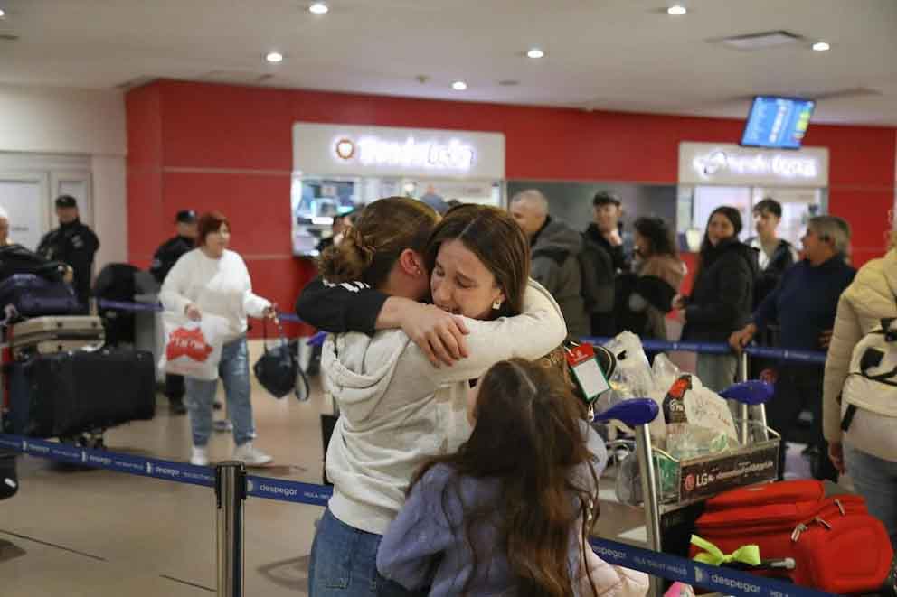 Samuel, un chico de 19 años que volvió en ese vuelo, contó que viajó a Israel para estudiar y después se quedó seis meses trabajando: “Cuando me estaba por volver, cayó la guerra”. <EM>Además, explicó que debió refugiarse en búnkers en distintas oportunidades cuando sonaban las alarmas por los ataques de los iraníes: “Viví un montón de experiencias que, a lo mejor, la gente de acá no toma conciencia. Es muy loco regresar acá, la verdad que no caigo todavía de estar con mis padres, ver en un rato a mi familia”, señaló.