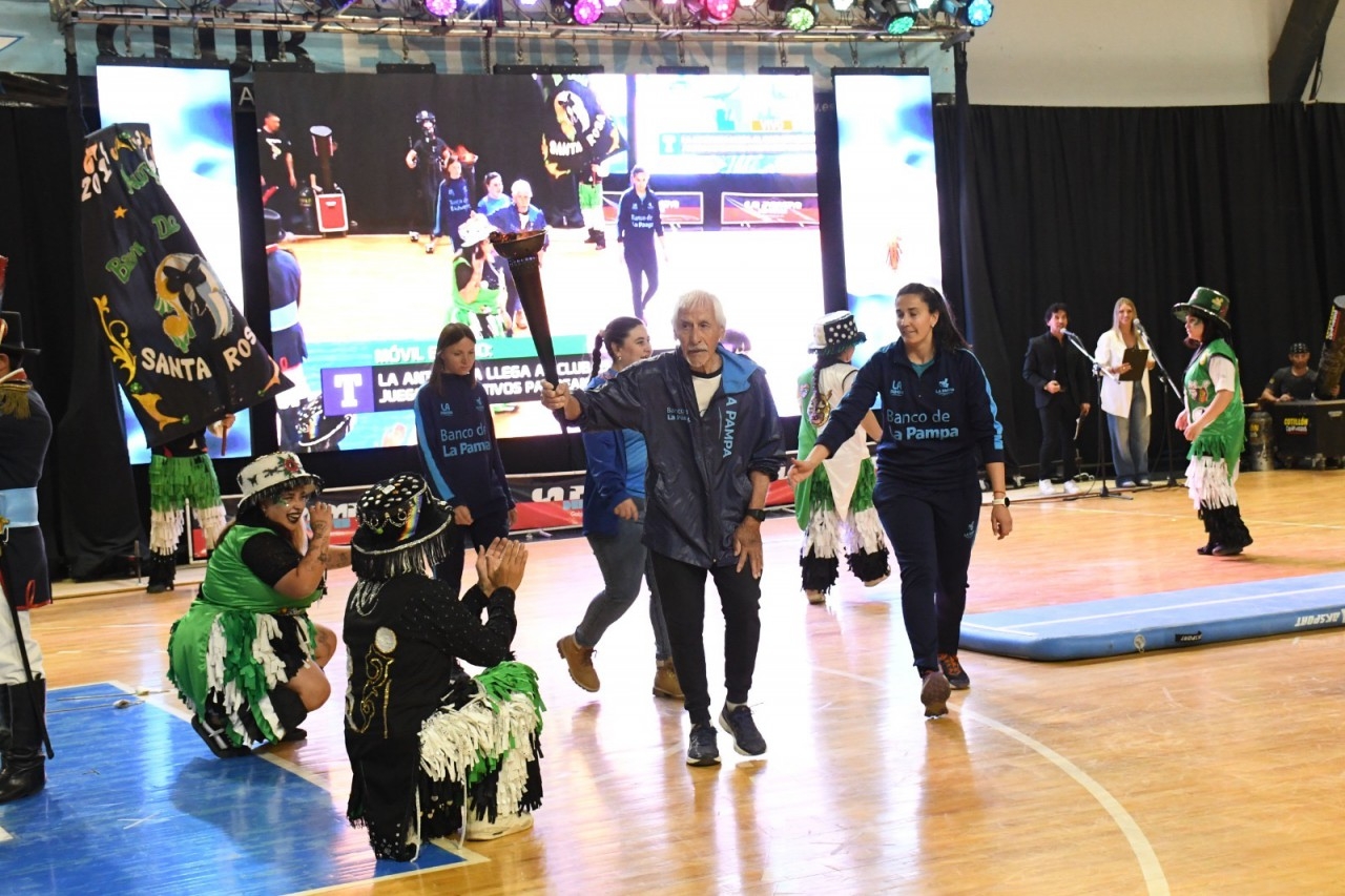 Alrededor de 900 atletas participaron de la inauguración de los Juegos Deportivos Pampeanos (JDP) Sub 14, cuya fiesta se realizó en el estadio de Estudiantes, siendo el atleta Ernesto Galván, de 88 años, el encargado de encender el pebetero.
