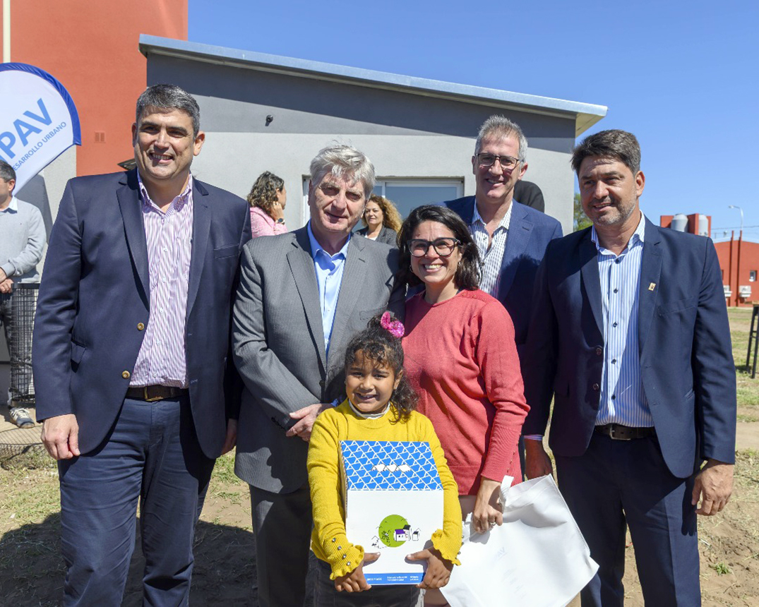 De la actividad participaron también el intendente anfitrión, Martín Mujica; la presidenta del IPAV, Erica Riboyra; legisladores nacionales y provinciales, entre otras autoridades y familias adjudicatarias de las viviendas.