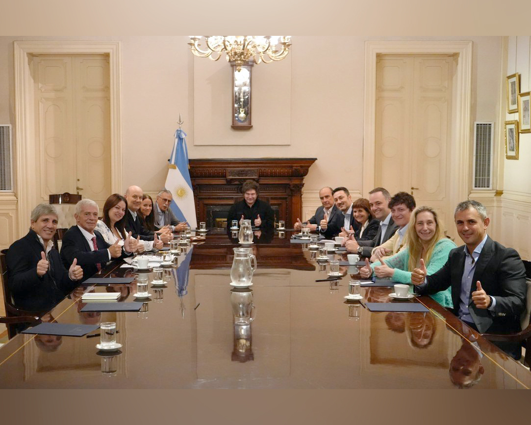 Durante el matinal encuentro se conformó la mesa federal con la completa tarea de recuperar el diálogo con los gobernadores “afines” al Poder Ejecutivo. Tras la oficialización de la señal a través de un breve mensaje en X, el vocero presidencial, Manuel Adorni, anunció que el próximo lunes 15 de septiembre, Milei protagonizará una cadena nacional para dar detalles del Presupuesto 2026.