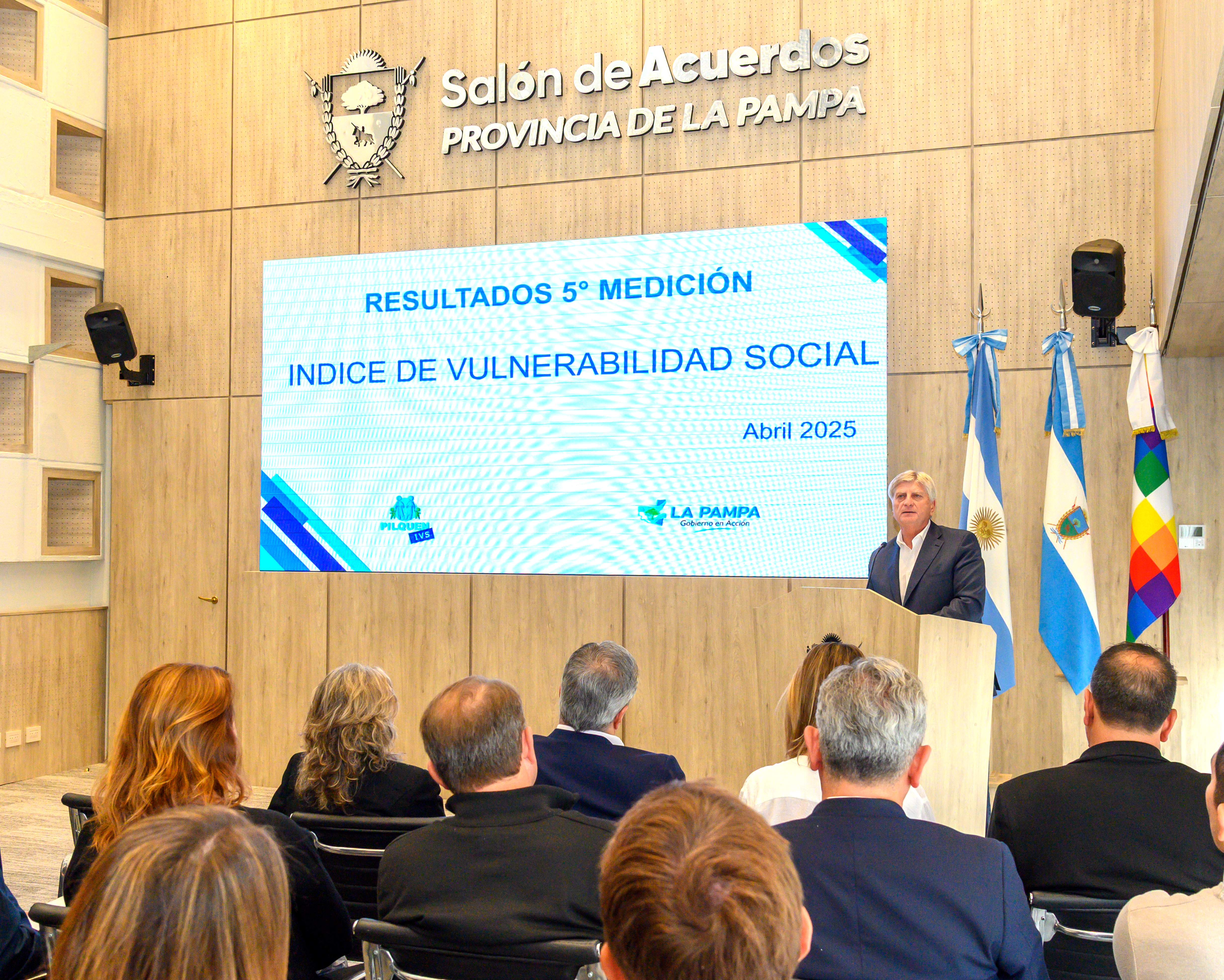 El acto de presentación del IVS se realizó en el Salón de Acuerdos de Casa de Gobierno y participaron, además de Ziliotto; la vicegobernadora, Alicia Mayora; el ministro de Desarrollo Social y Derechos Humanos, Diego Álvarez; el ministro de Conectividad y Modernización, Antonio Curciarello; el ministro de Gobierno y Asuntos Municipales, Pascual Fernández; la subsecretaria de Planificación y Evaluación de Políticas Sociales, Laura Ramborger; el rector de la Universidad Nacional de La Pampa, Oscar Alpa; intendentes e intendentas y diputados provinciales.