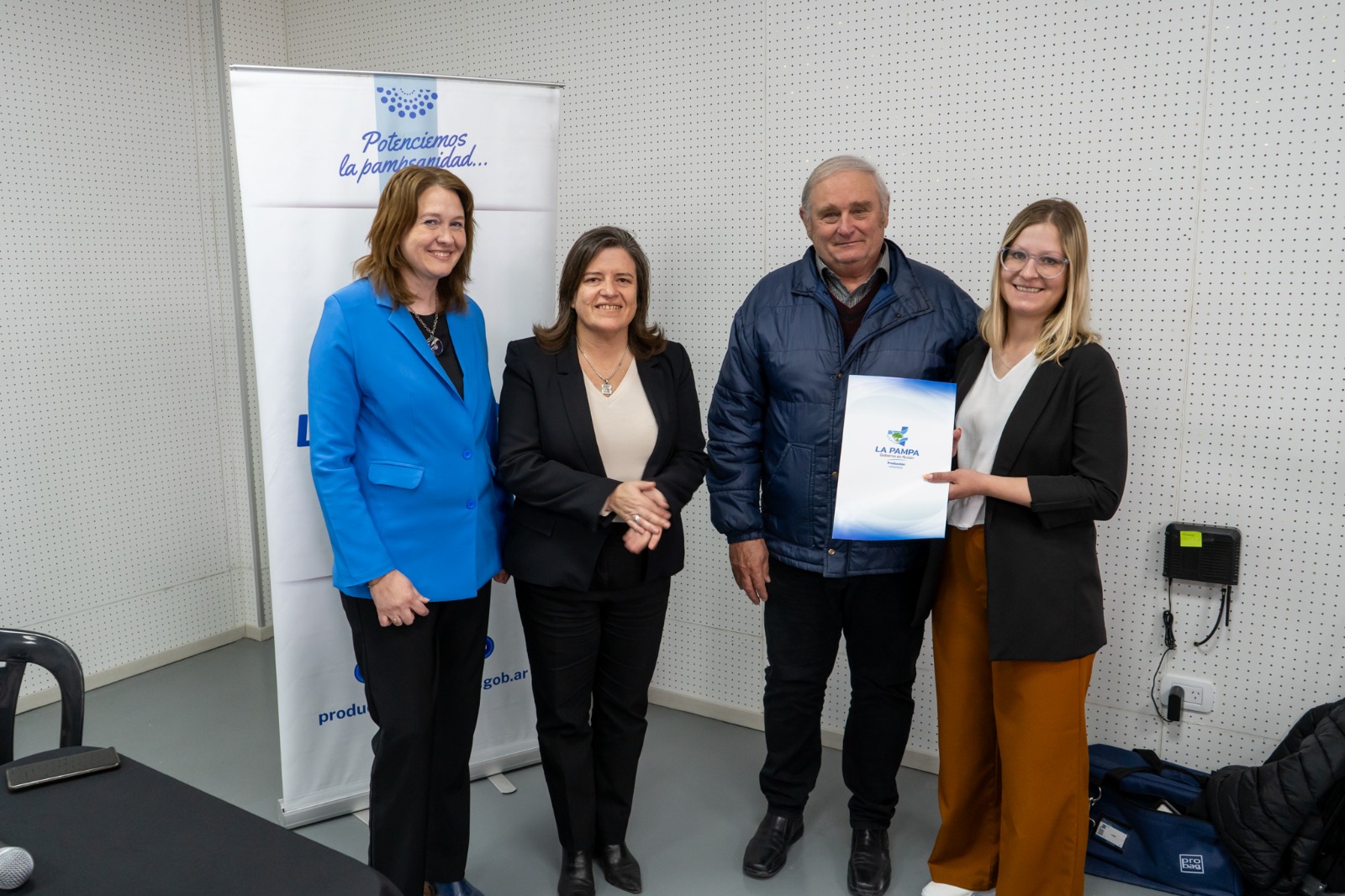Estuvieron presentes también, el subsecretario de Asuntos Agrarios, Ricardo Baraldi, los directores de Ganadería, Marcelo Lluch, de Extensión Agropecuaria, Virginia Martínez, y de Microemprendimientos y Micropymes, Alejandra Galán, los subdirectores de Asistencia Técnica y Financiera, Eugenia Borges y de Extensión Agropecuaria, Federico Pellizari. Además de los intendentes de Doblas, General Campos, Jacinto Arauz y Colonia Santa Teresa.