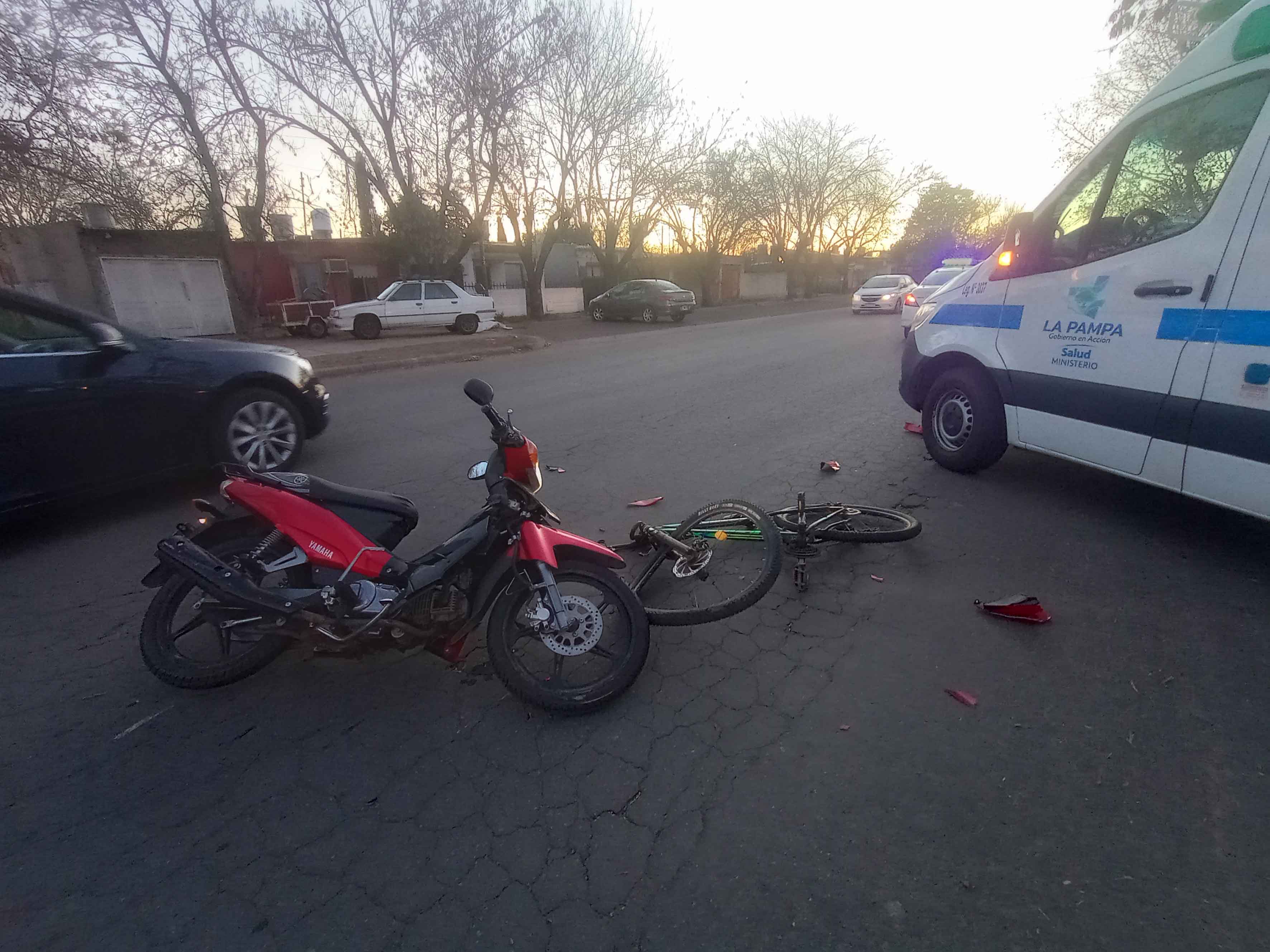 La colisión fue protagonizada por una motocicleta Yamaha 110 c.c., conducida por una joven que circulaba por calle 108 de sur a norte, y una bicicleta en la que se trasladaba un adolescente de 14 años, en dirección hacia la calle 3.
