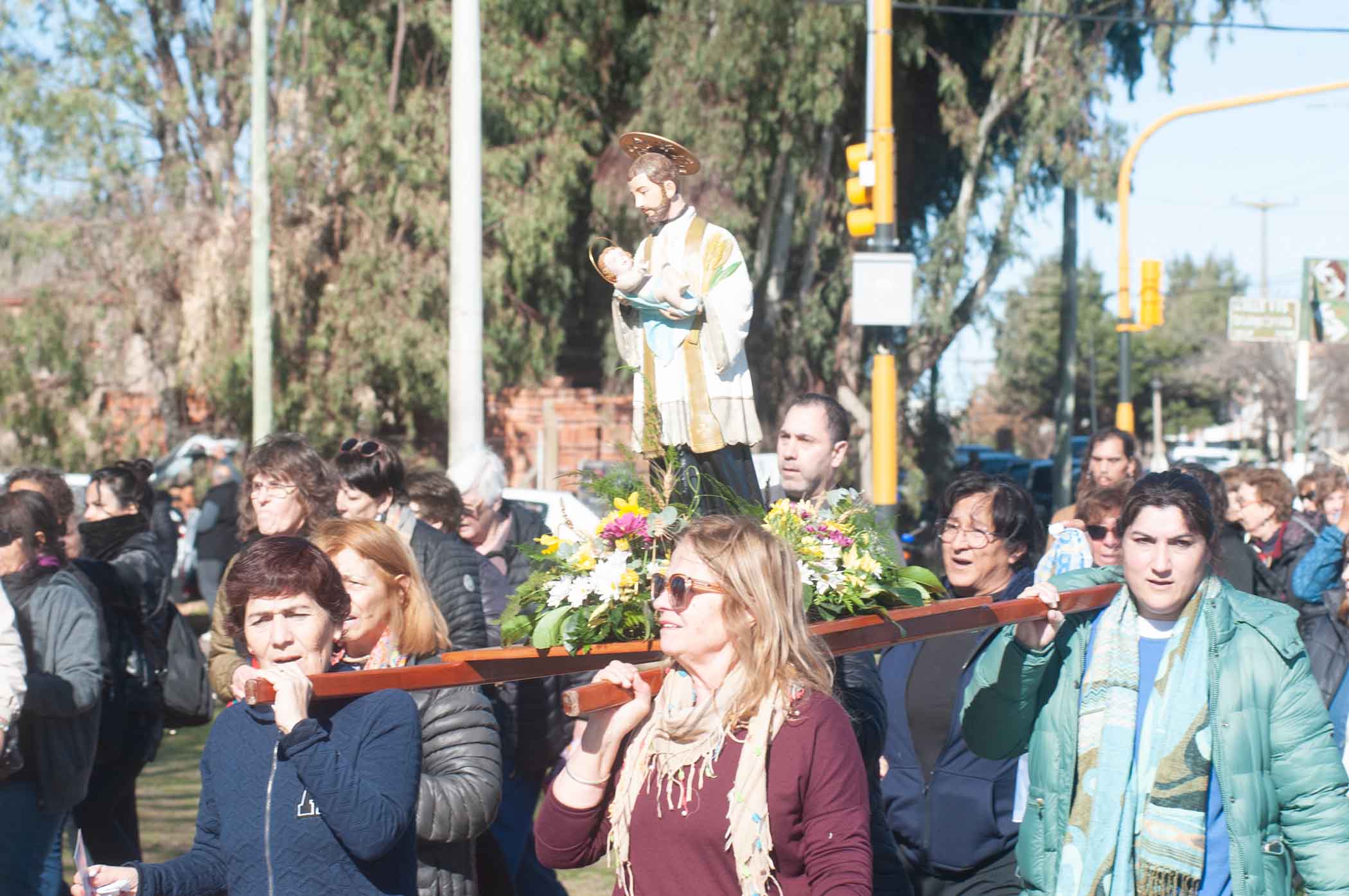 Portando una imagen de San Cayetano, la movilización recorrió varias calles hasta llegar a la Capilla San Cayetano, donde seguidamente se desarrolló una misa al aire libre, gracias a que las condiciones climáticas también acompañaron al evento.