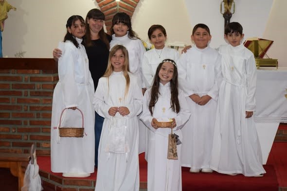 Recibieron este importante sacramento: Catalina Sibona Albornoz, Francisco Torres, Victoria Rodríguez, Jon Ferreyra Fritz, Valentina Juárez Sueldo, Priscila Arroyo y BenicioTorancio.