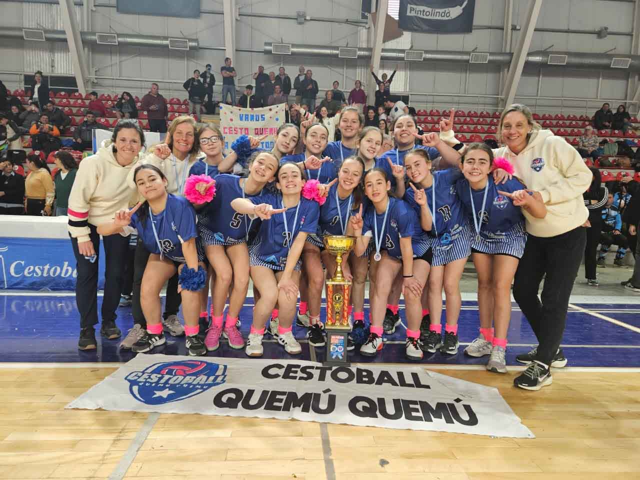 Un momento inolvidable para el deporte de Quemú Quemú se registró ayer. El equipo de cestoball que representa a la localidad, dirigido por Carmen Ruiz, se consagró campeón de la Liga Nacional Sub 14, realizada en la ciudad de Villa Mercedes (San Luis).
