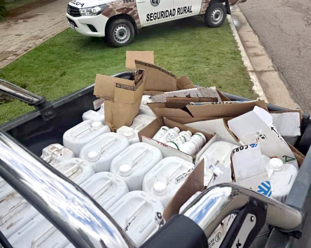 Posteriormente, y en cumplimiento del exhorto emitido por el Juzgado de Garantías N° 2, se allanó una vivienda donde se halló la totalidad de los elementos sustraídos, entre ellos una gran cantidad de agroquímicos y bolsas de semillas.