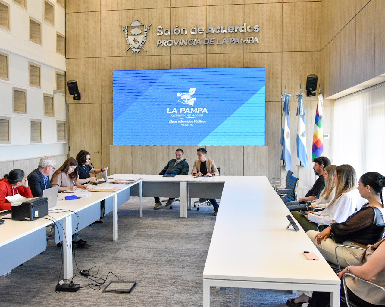 El acto administrativo contó con la presencia del ministro de Obras y Servicios Públicos, Alfredo Intronati; el director general de Casa de La Pampa, Pablo Rubio; y la subsecretaria de Obras Públicas, Antonela Dosso, junto a representantes de las empresas oferentes del rubro de la construcción.