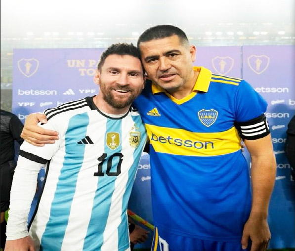 El astro argentino Lionel Messi fue ovacionado por la hinchada de Boca, que le ofreció un particular pedido de disculpas y también una solicitud especial para que se vistiera de azul y oro durante la despedida de Juan Román Riquelme, realizada anoche en una Bombonera repleta.