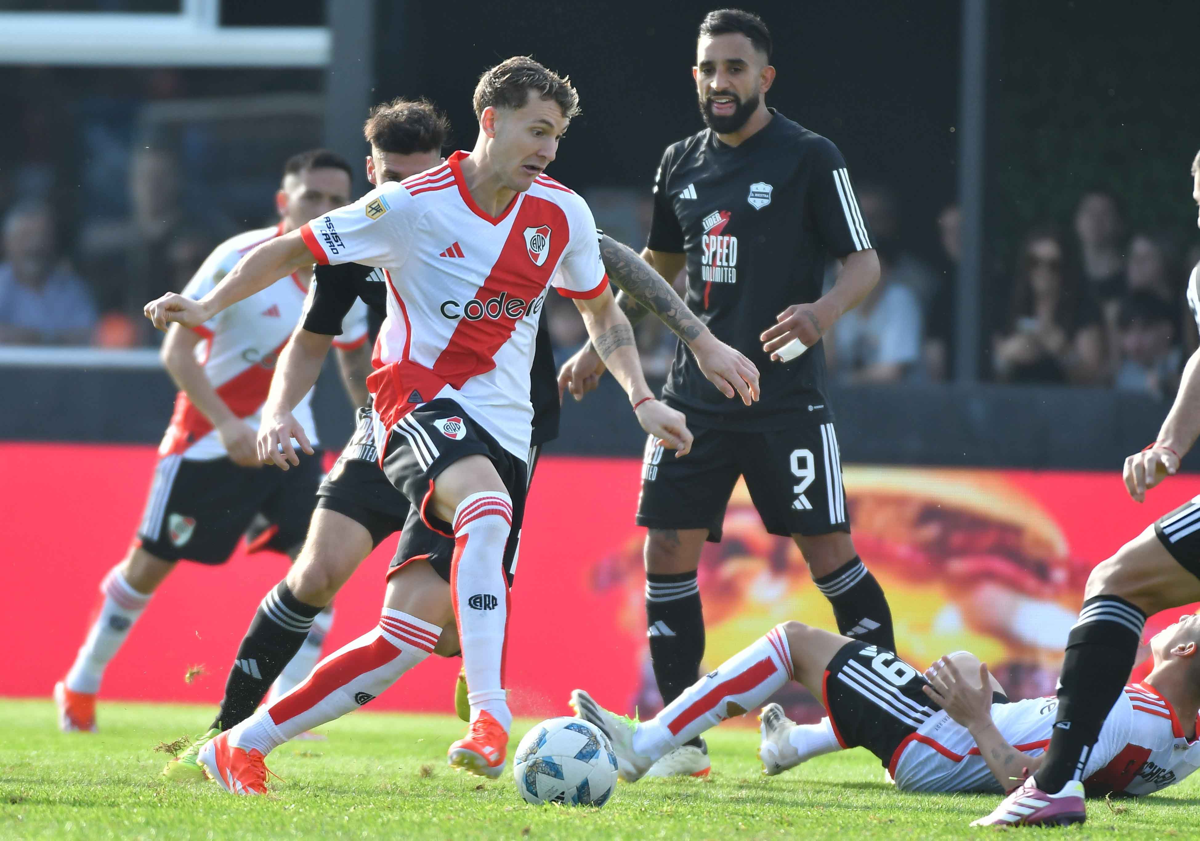 El equipo dirigido por Martín Demichelis empezó algo dubitativo, con algunos problemas para meterse en campo de Riestra, pero tras un bombazo de Claudio Echeverri que dio en el travesaño ganó más terreno y a llegar más al arco de Ignacio Arce.