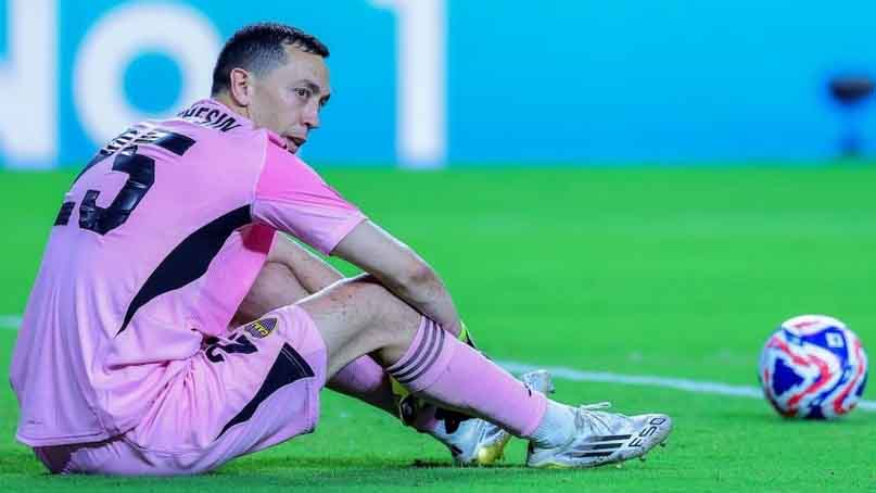 Con el triunfo a punto de concretarse, el arquero campeón de América con la Selección argentina en 2021 recibió la pelota en su área, quiso salir jugando, eludiendo al delantero Facundo De La Vega, recortó para adentro con una gambeta pero, inmediatamente, tocó en corto para su compañero y pidió el cambio, acusando un dolor en la pierna derecha.