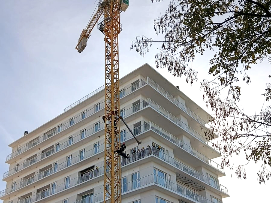 En este caso se simuló el rescate del operador de una grúa imposibilitado de descender por sus propios medios. “Nosotros concurrimos como observadores y haremos una evaluación que pasará a formar parte del Legajo Técnico de la Obra, ya que es una documentación de carácter legal”, aseguró a la Agencia Provincial de Noticias el director de Inspecciones de la Secretaría de Trabajo y Promoción del Empleo, Gerardo Salvadori.