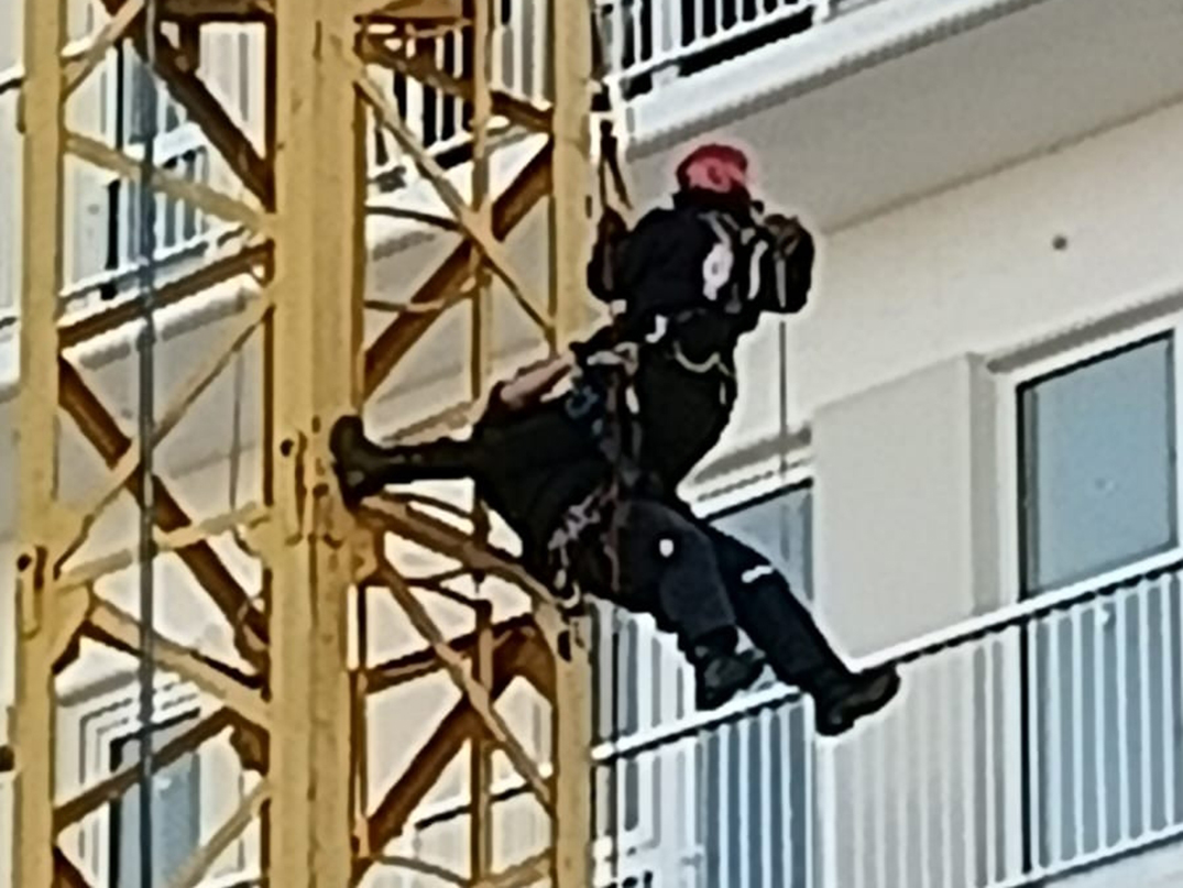 La Secretaría de Trabajo y Promoción del Empleo participó de un simulacro de rescate del operador de una grúa, realizado en una obra en construcción de General Pico.