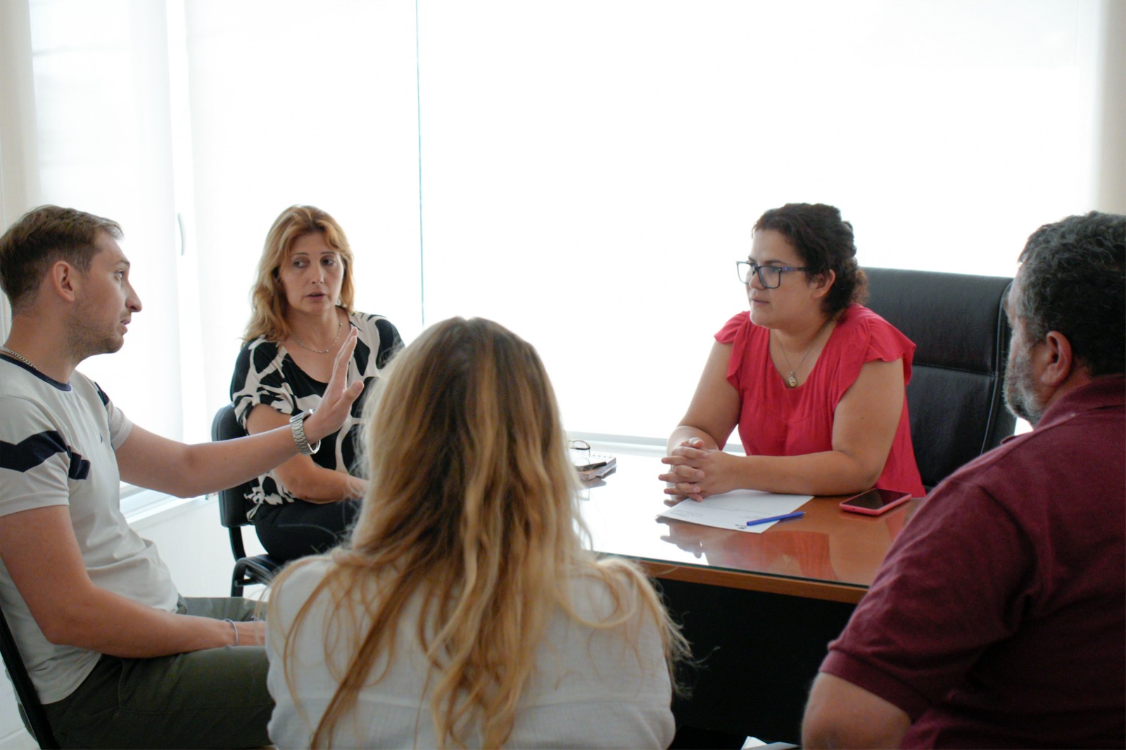 La secretaria de Desarrollo Social, Gabriela Luna Echegaray; Graciela Sánchez, directora de Articulación Territorial; Sergio Gómez, director de Información Social; Rosa Cuello, delegada del Ministerio de Desarrollo Social y Derechos Humanos y Enzo Monteiro, representante de la Subsecretaría de Planificación y Evaluación de Políticas Sociales, mantuvieron una reunión para analizar los avances al respecto.