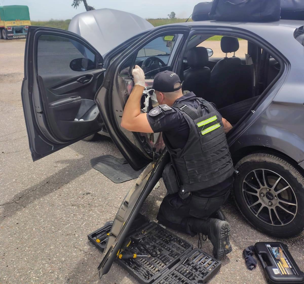 Durante la inspección realizada con la participación del binomio de detección canina, el can adiestrado marcó la posible presencia de estupefacientes en el vehículo. Con la correspondiente autorización judicial, se procedió a la requisa del rodado, hallándose oculto dentro de paneles un envoltorio que contenía un paquete compacto con 1,028 kilogramos de cocaína. En el procedimiento también se secuestraron dinero en efectivo, documentación y teléfonos celulares, quedando además el vehículo a disposición de la Justicia. La persona involucrada quedó detenida y a disposición de la Fiscalía Federal interviniente, continuándose con las actuaciones judiciales correspondientes.