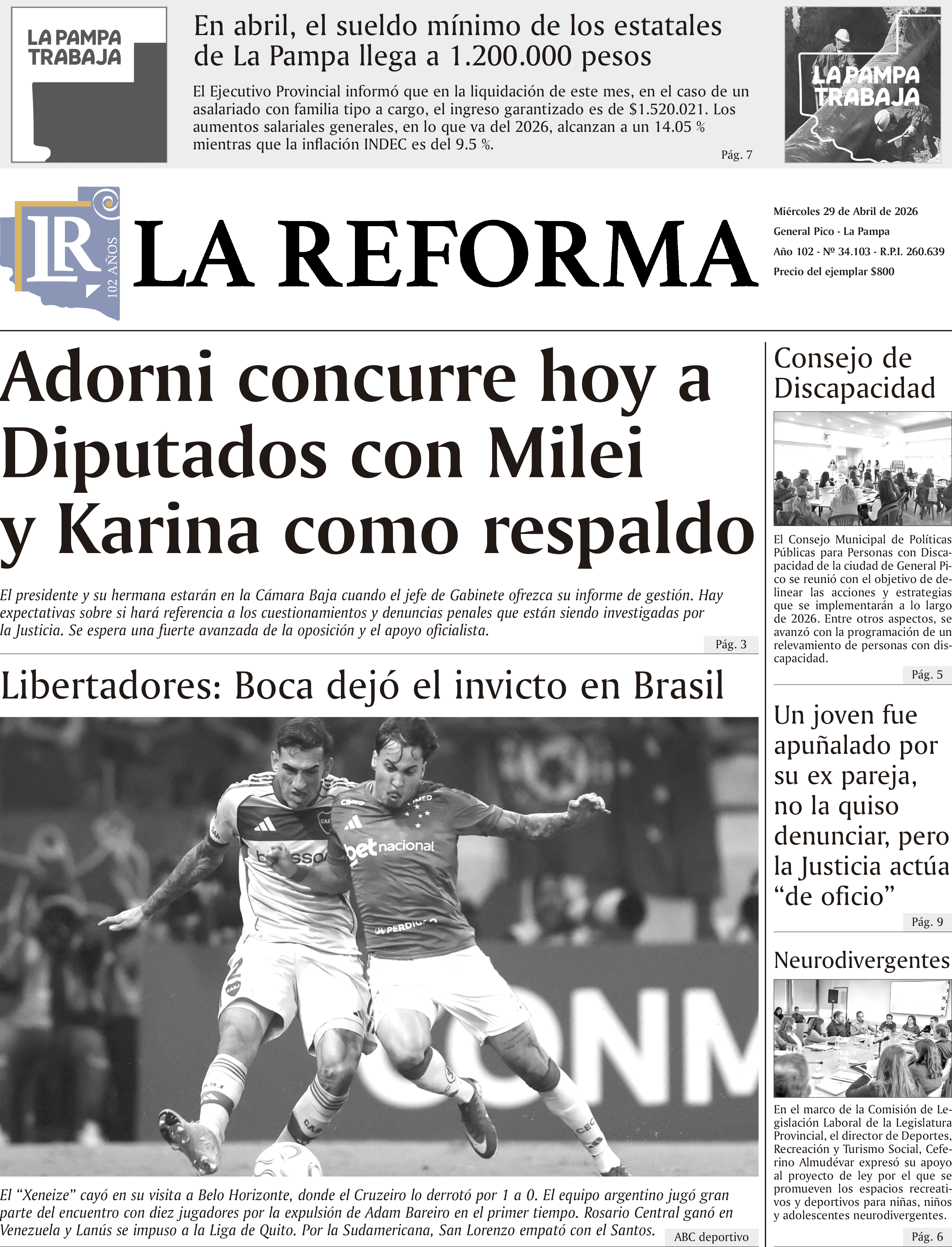 MIÉRCOLES 29 de Abril de 2026